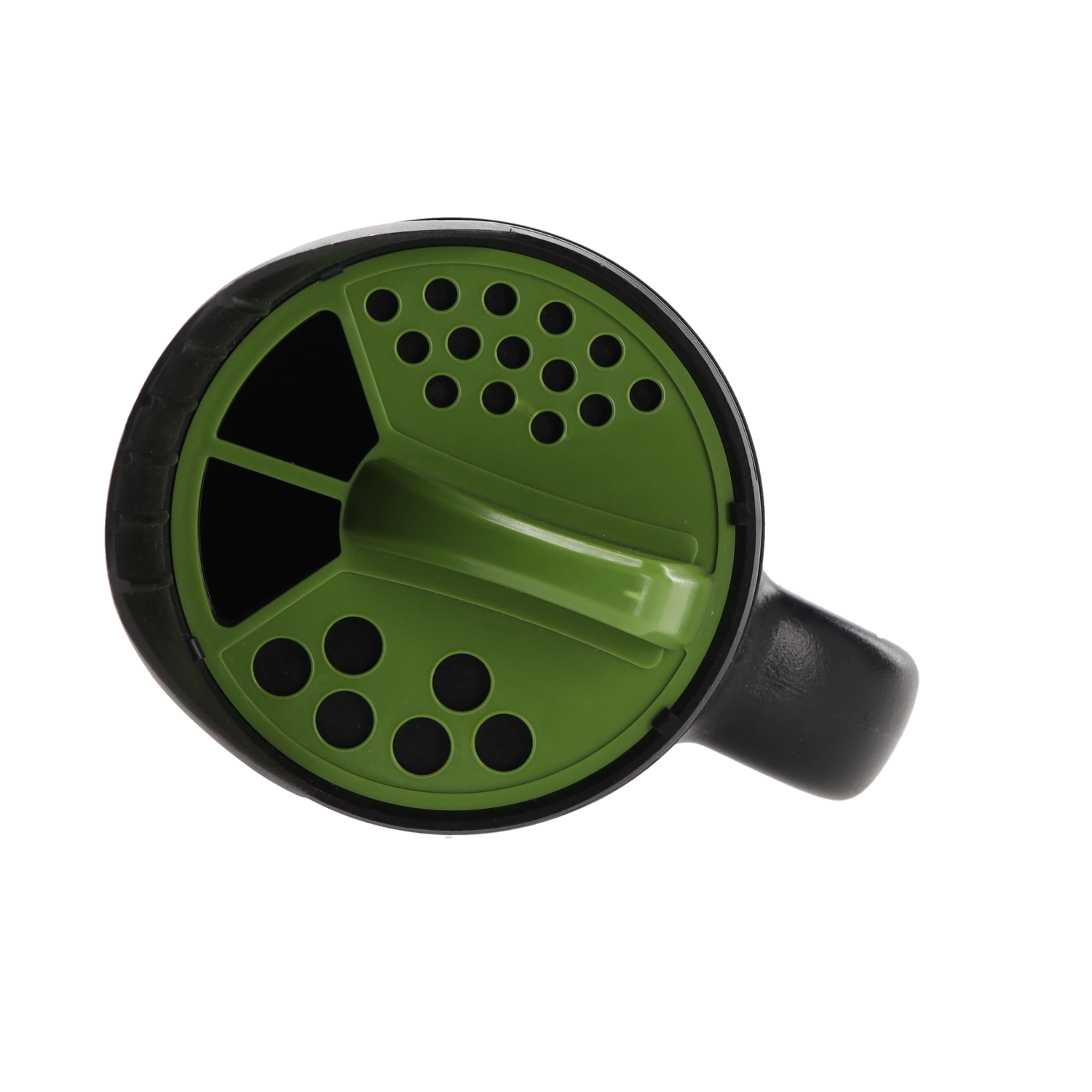 De grote ergonomische handgreep en de uitgebalanceerde vorm zorgen voor een stabiele grip en comfort, ook bij langer strooien.