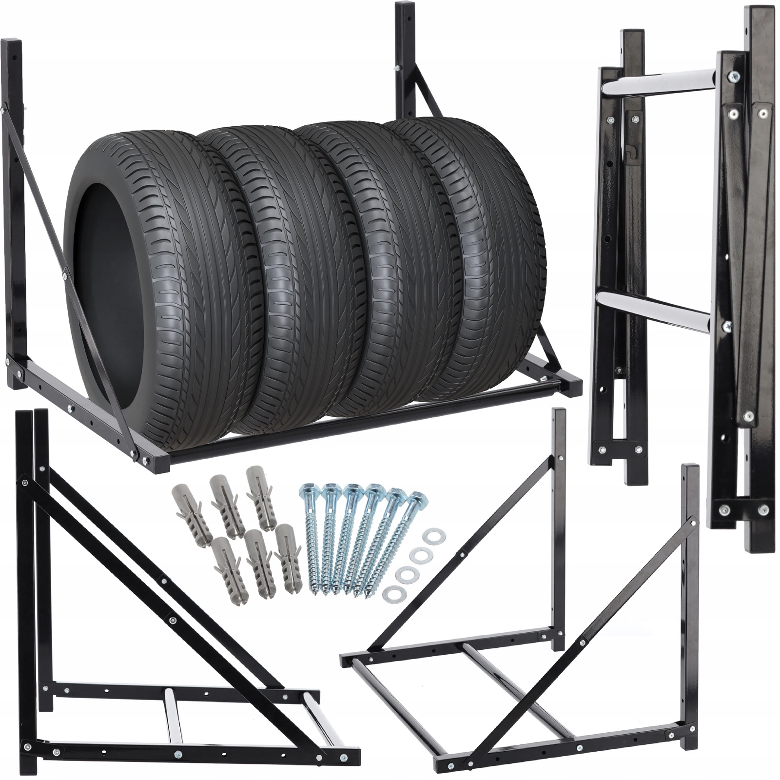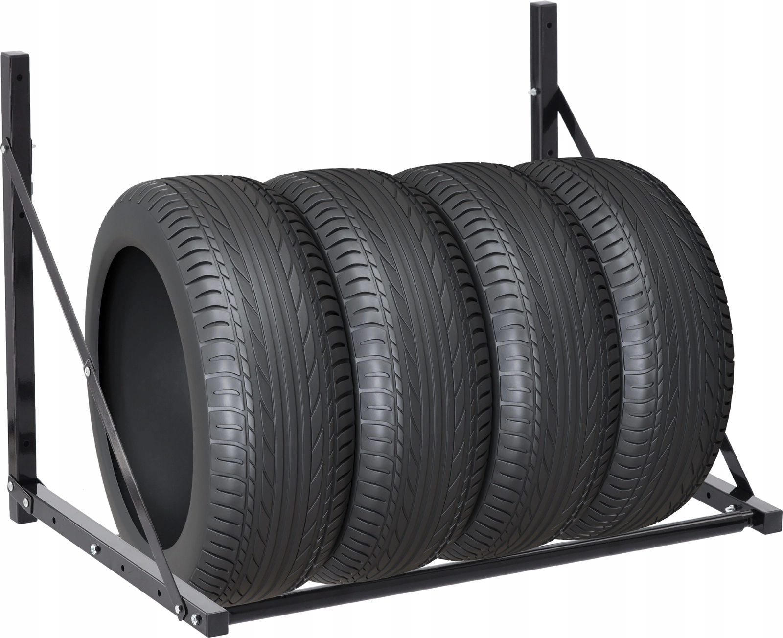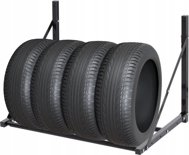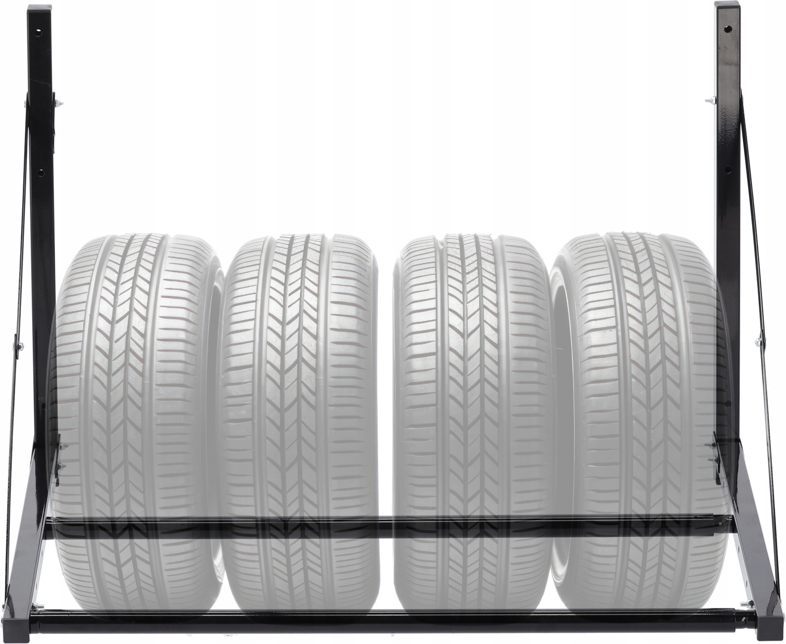Robuuste hangende bandenrek voor garage en werkplaats met verstelbare breedte van 80–120 cm en een draagvermogen tot 100 kg. Houdt tot vier banden van de vloer, bespaart ruimte en zorgt voor veilige en correcte opslag. Duurzame stalen constructie met zwarte afwerking en eenvoudige montage, inclusief pluggen en schroeven.