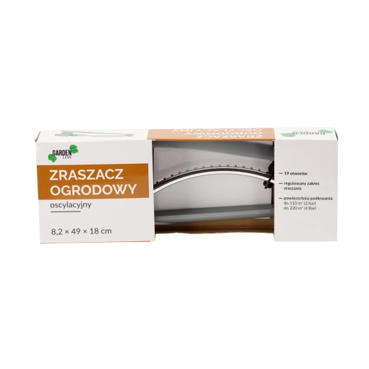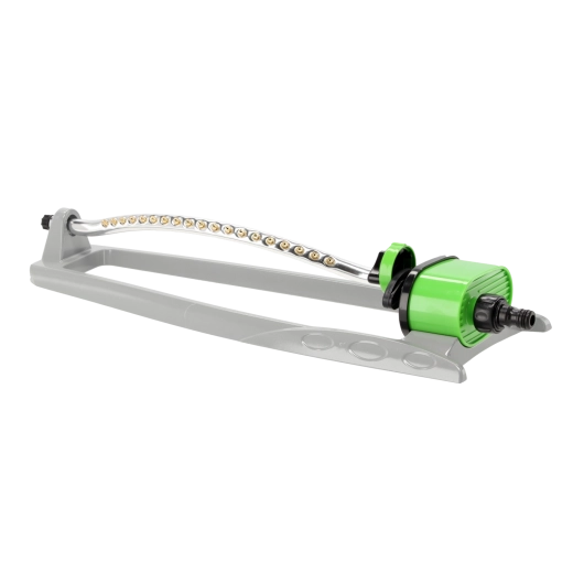 De oscillerende sproeier is een betrouwbare hulp voor regelmatige en milde beregening van gazons, perken en siergedeelten. De robuuste constructie van aluminium en ABS garandeert een lange levensduur, terwijl 19 messing sproeikoppen zorgen voor een fijne en gelijkmatige regen zonder plassen te vormen.