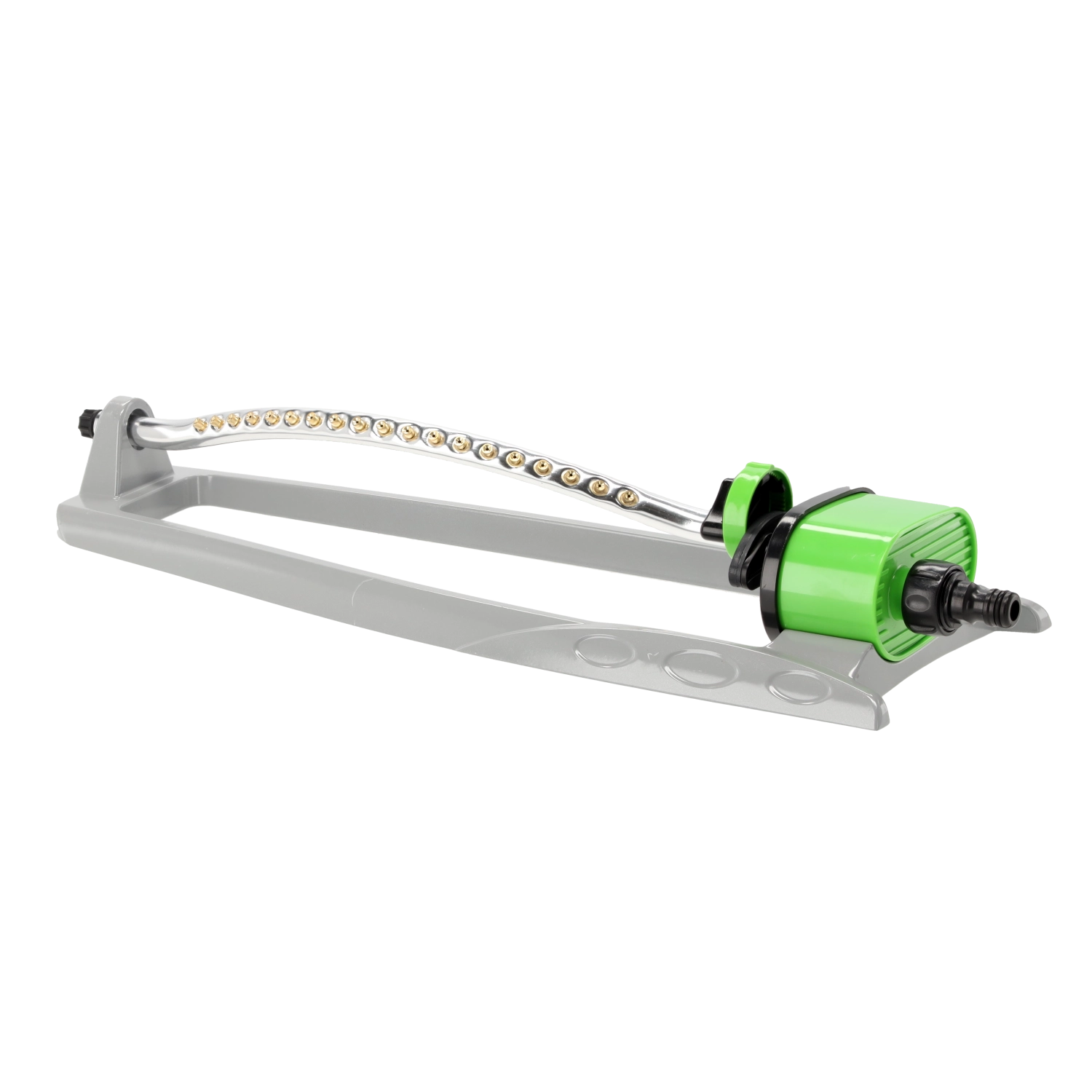 Praktische oscillerende sproeier voor een gelijkmatige beregening van grotere oppervlakken. Dankzij de combinatie van duurzaam aluminium en ABS, 19 messing sproeikoppen en een instelbaar sproeibereik besproeit hij tot 220 m² en zorgt hij voor een efficiënte verzorging van gazon en tuin.