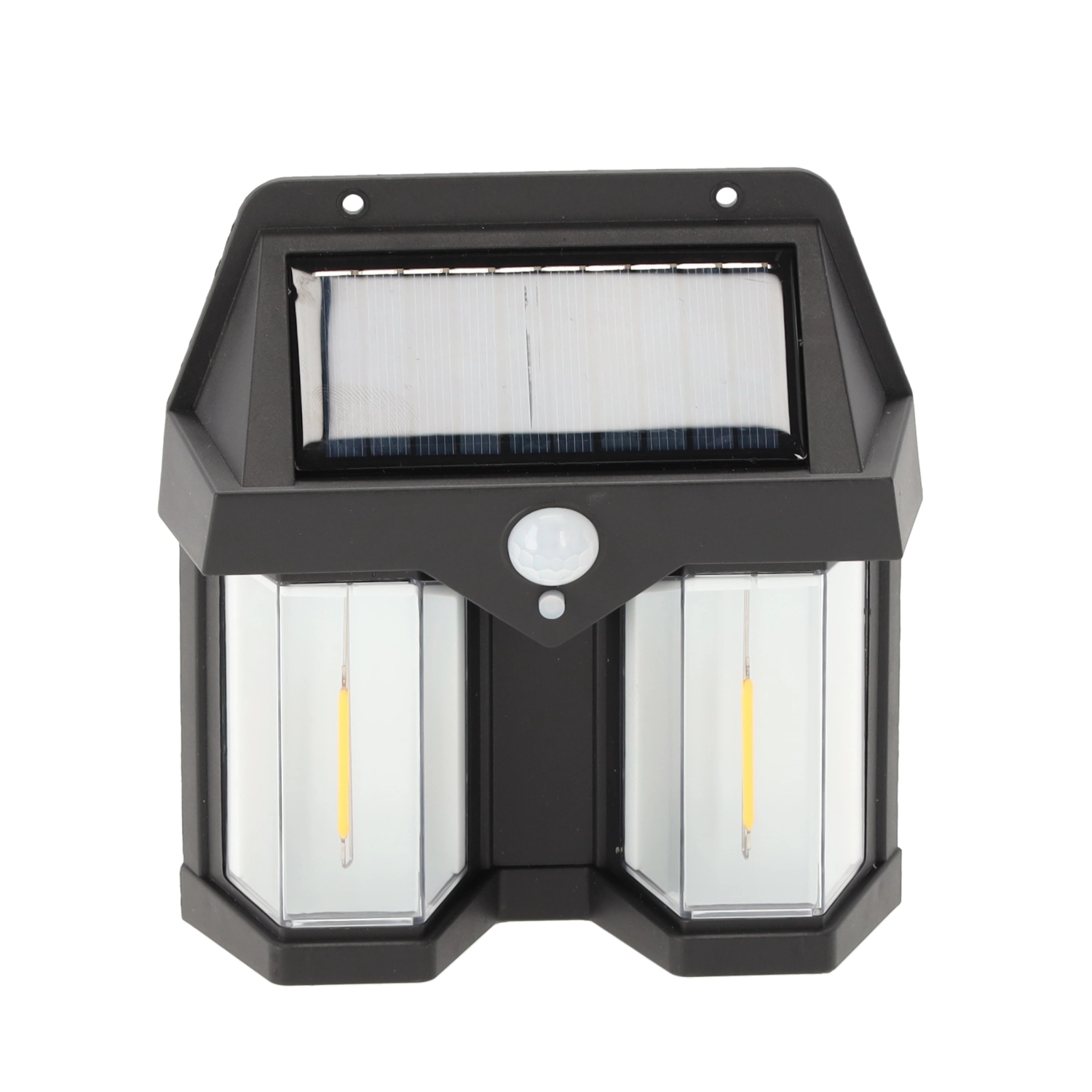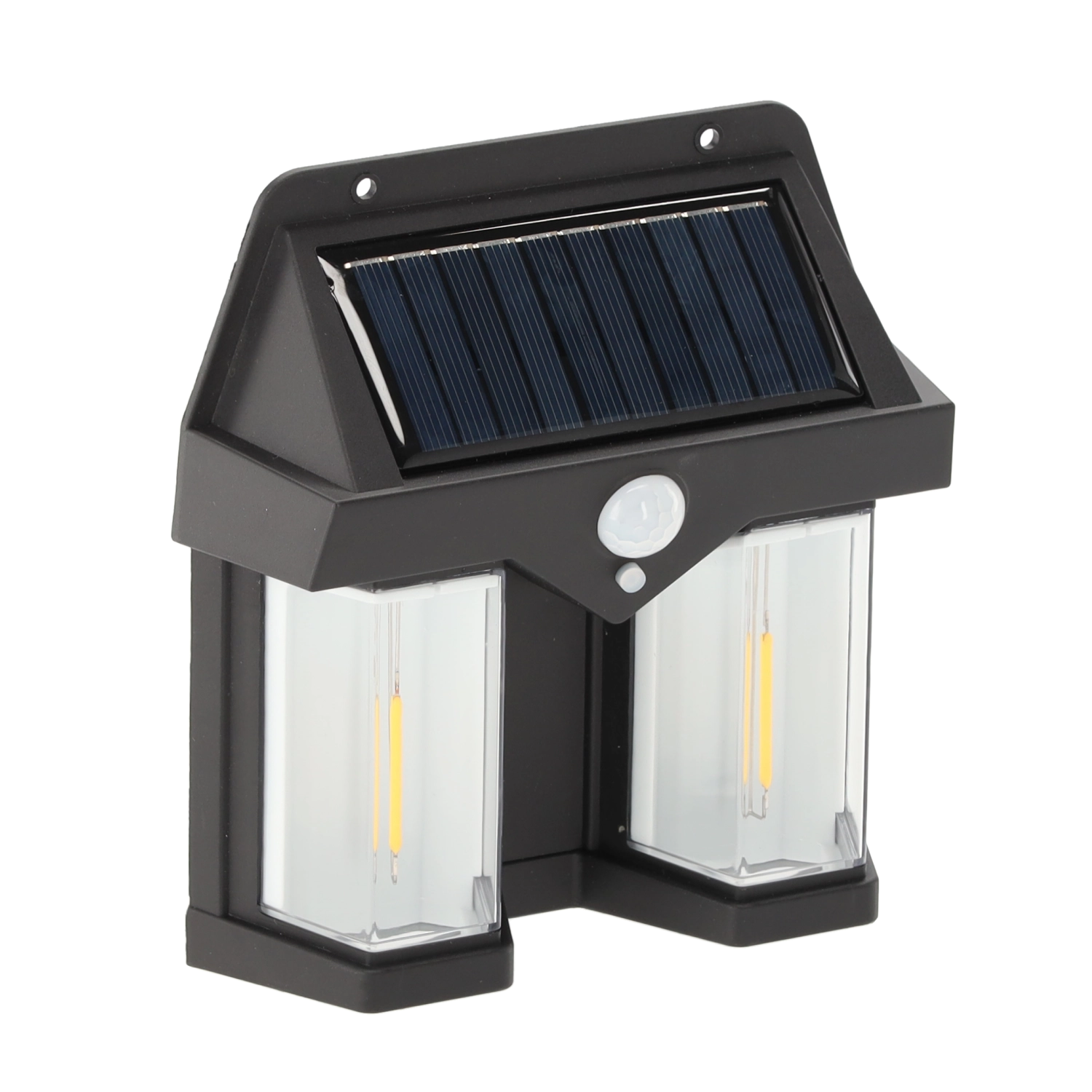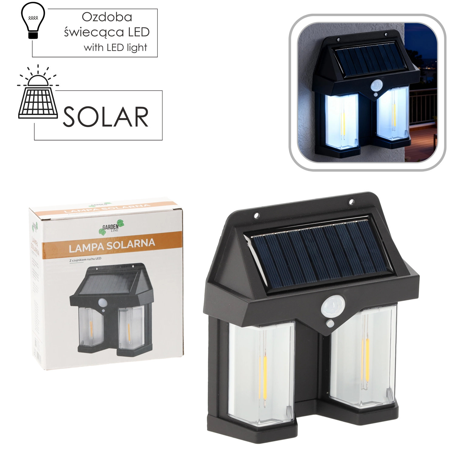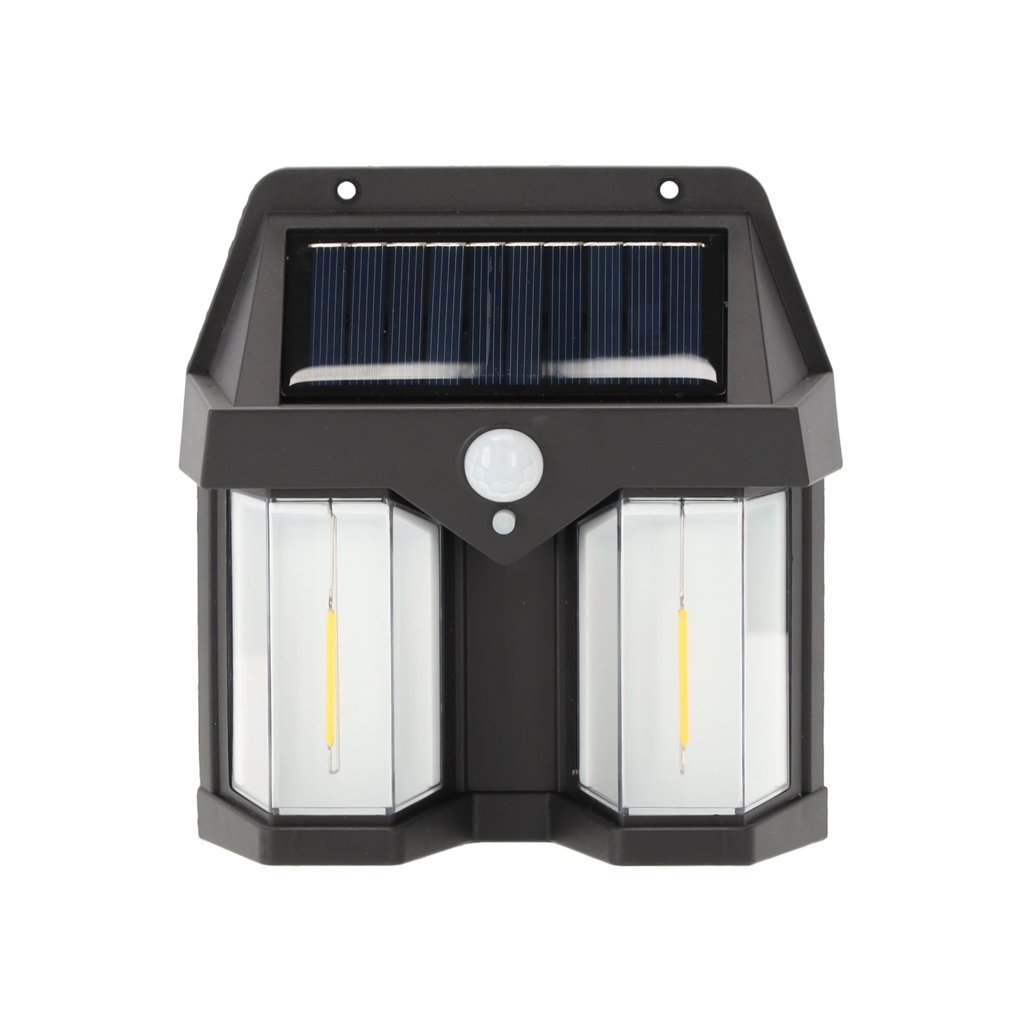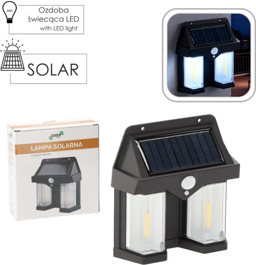 De solarlamp combineert een modern design met praktische functionaliteit. Het ingebouwde paneel van 1 W/5,5 V laadt overdag de 18650-accu (3,7 V, 800 mAh) op en activeert na zonsondergang automatisch de verlichting. De PIR-bewegingssensor met een bereik van 8–10 m en een brede dekking van 270° zorgt voor licht precies wanneer je langskomt.