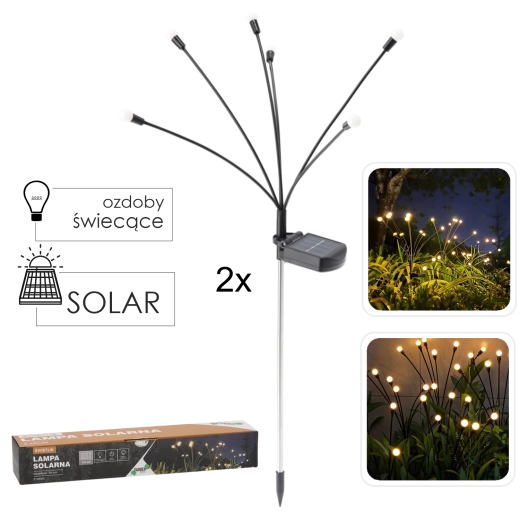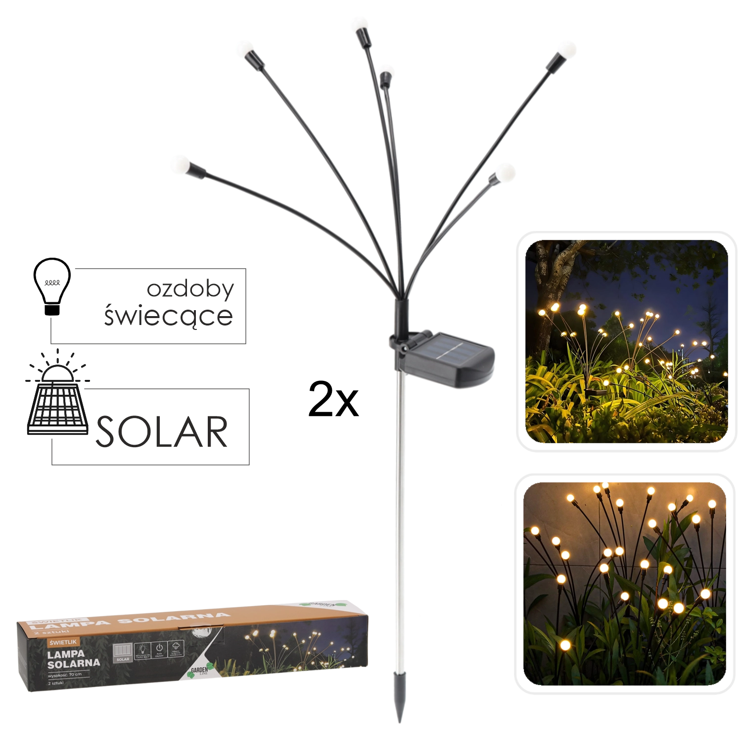 Set van 2 zonne-energie tuinlampen Vuurvliegje, 70 cm, warmwit