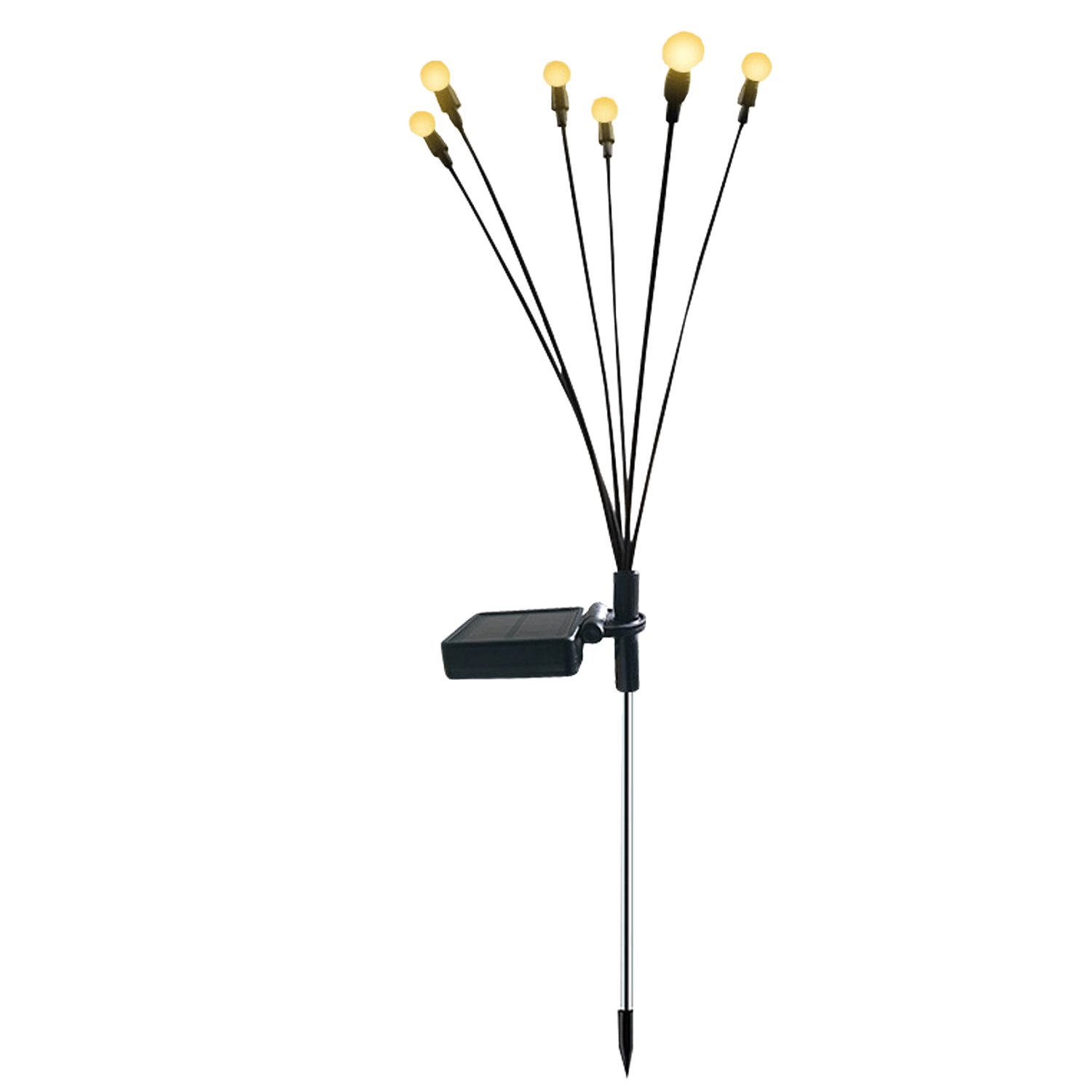 De elegante zonne-energiestralers in vuurvliegvorm toveren je buitenruimte om tot een betoverend hoekje. Elke lamp biedt 6 warmwitte lichtpunten die decoratief ogen en tegelijk praktisch paden of perk­randen accentueren. Dankzij het polykristallijne zonnepaneel laden ze overdag op en gaan ze automatisch aan bij schemering.