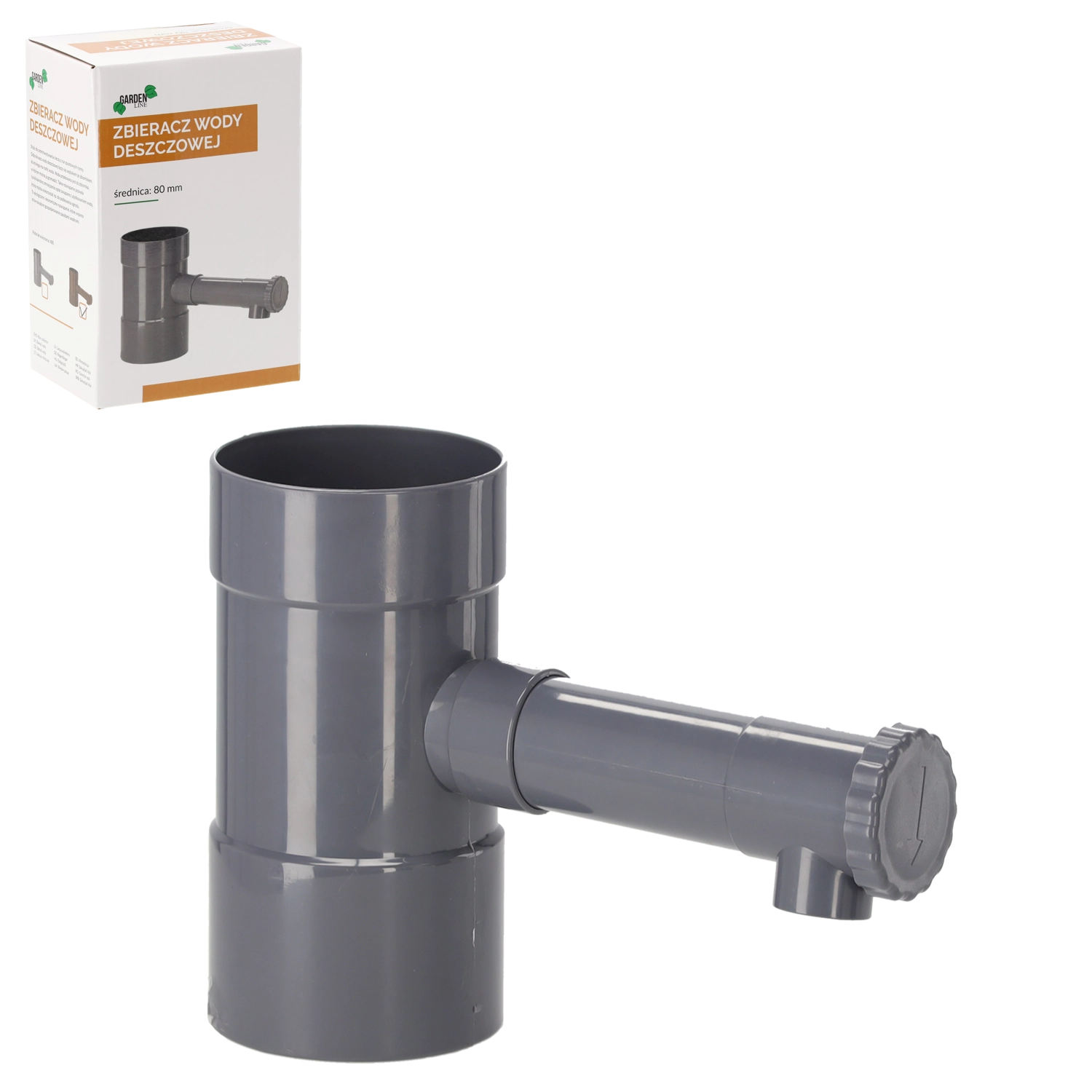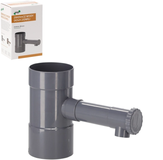 De grijze regentonvanger voor regenpijpen met een diameter van 80 mm vangt een deel van de waterstroom uit de dakgoot op en leidt die naar een vat of reservoir. De robuuste ABS-kunststof weerstaat weersomstandigheden en uv-straling, waardoor hij ideaal is voor langdurig buitengebruik. De installatie is snel en zonder ingewikkelde aanpassingen.