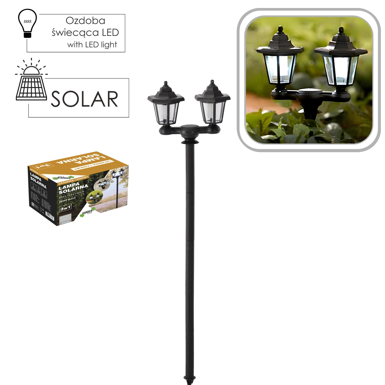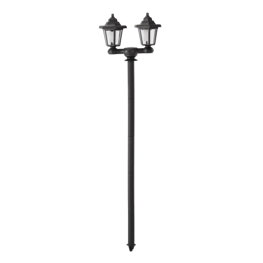 Deze veelzijdige zonne- lamp combineert een klassiek uiterlijk met moderne efficiëntie. Twee transparant afgedekte hoofden zorgen voor een bredere lichtdekking voor paden, opritten of terrassen; elk hoofd kan worden losgeschroefd en als wandarmatuur worden gebruikt. Zonder bekabeling, met automatisch laden en werking bij schemering is hij ideaal voor onderhoudsarme buitenverlichting.