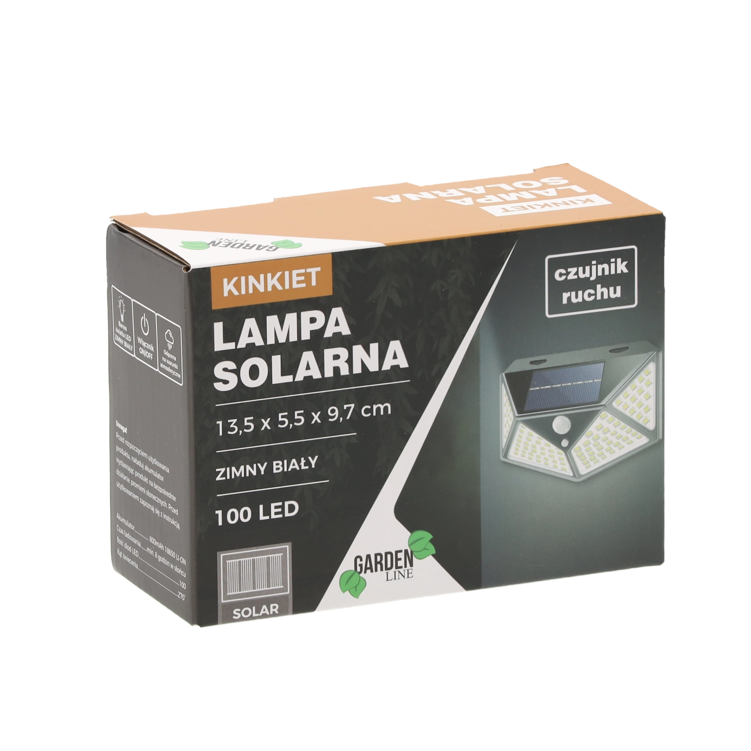 De compacte afmetingen van 13,5 × 5,5 × 9,7 cm maken onopvallende installatie mogelijk aan muren bij ingangen, garages of hekken. De ingebouwde accu 18650 Li‑ion 800 mAh laadt overdag op via het bovenliggende zonnepaneel en levert ’s nachts helder koud wit licht zonder noodzaak voor het elektriciteitsnet.