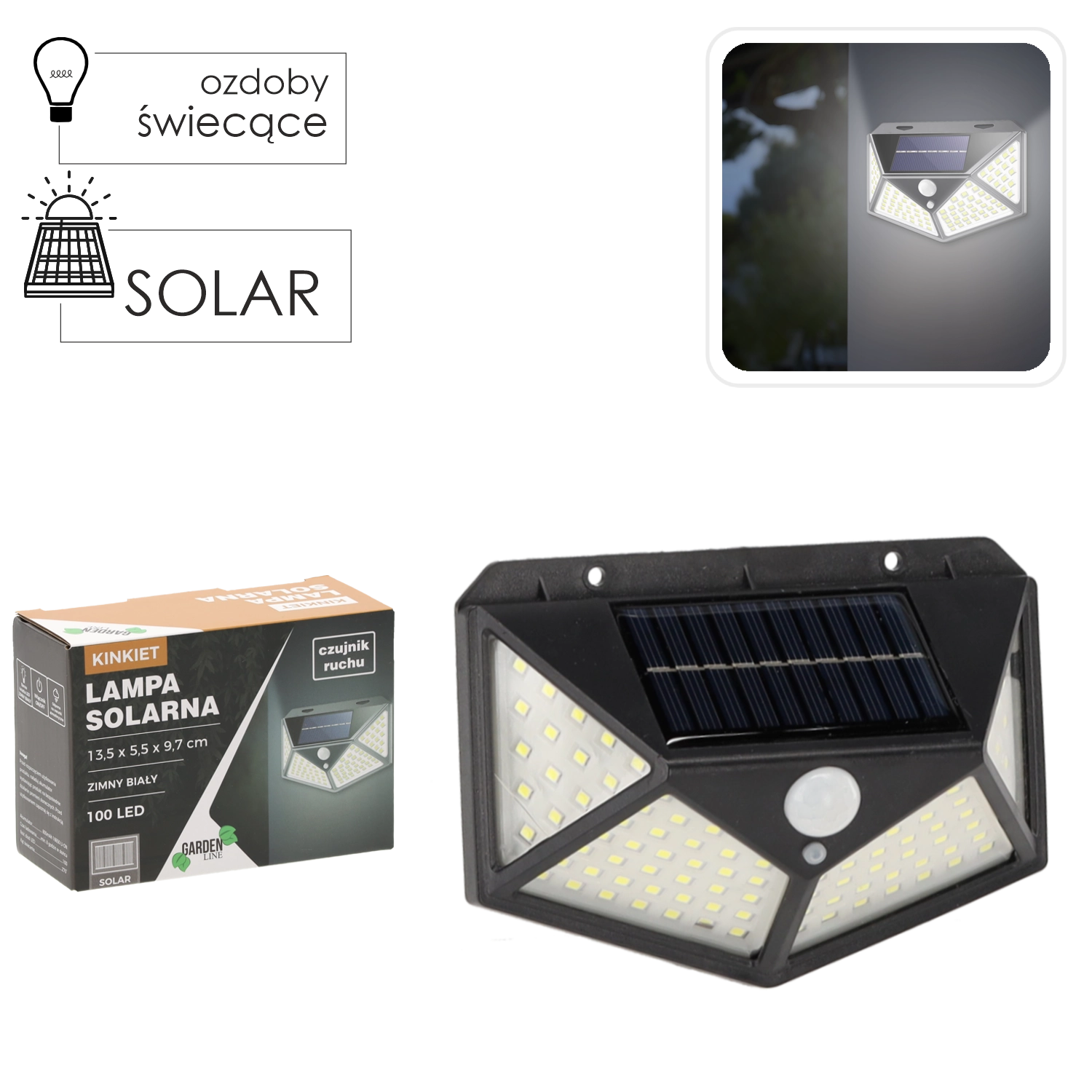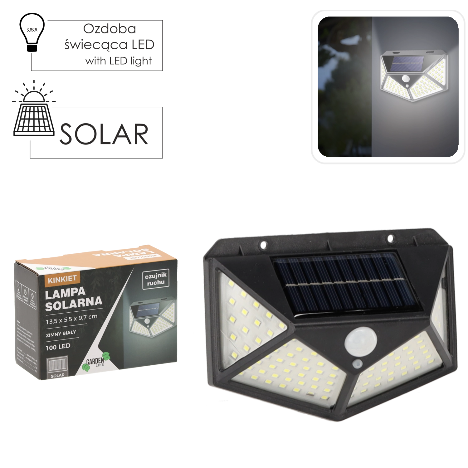 Het dichte veld van 100 LED’s zorgt voor een krachtige lichtopbrengst met een koelwitte tint, ideaal voor veilige verlichting van paden, ingangen en achtertuinen.