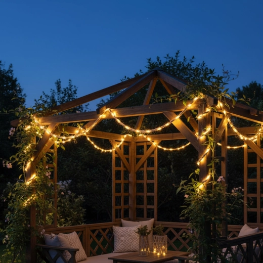 Voorzie je buitenruimte van zacht, gezellig licht. Deze zonne-LED-slinger is ideaal om architectonische elementen, waterpartijen en planten te accentueren. Het amorfe zonnepaneel zorgt overdag voor betrouwbaar opladen en levert 's avonds aangenaam warm wit licht gedurende meerdere uren.