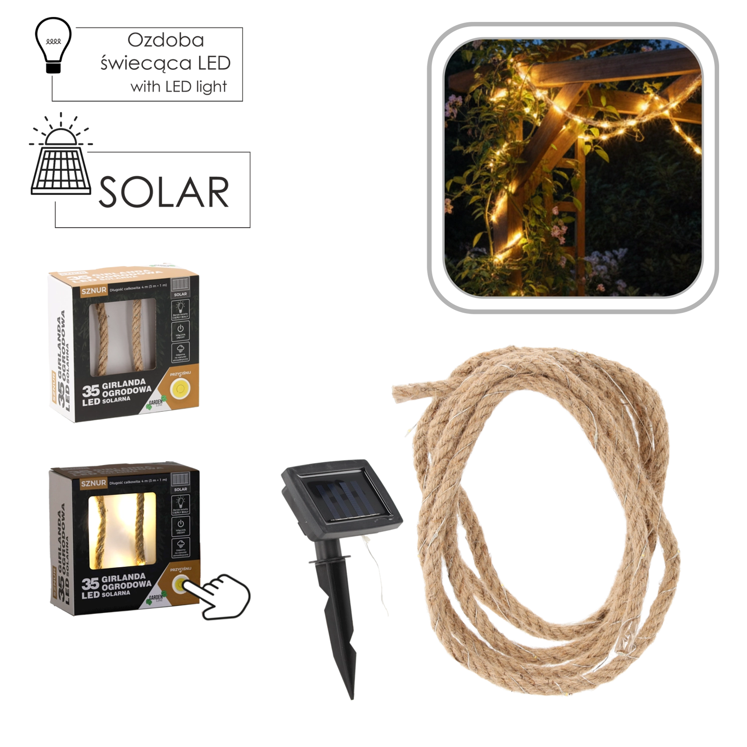 Zonne-tuin-slinger 35 LED warm wit, lengte 4 m