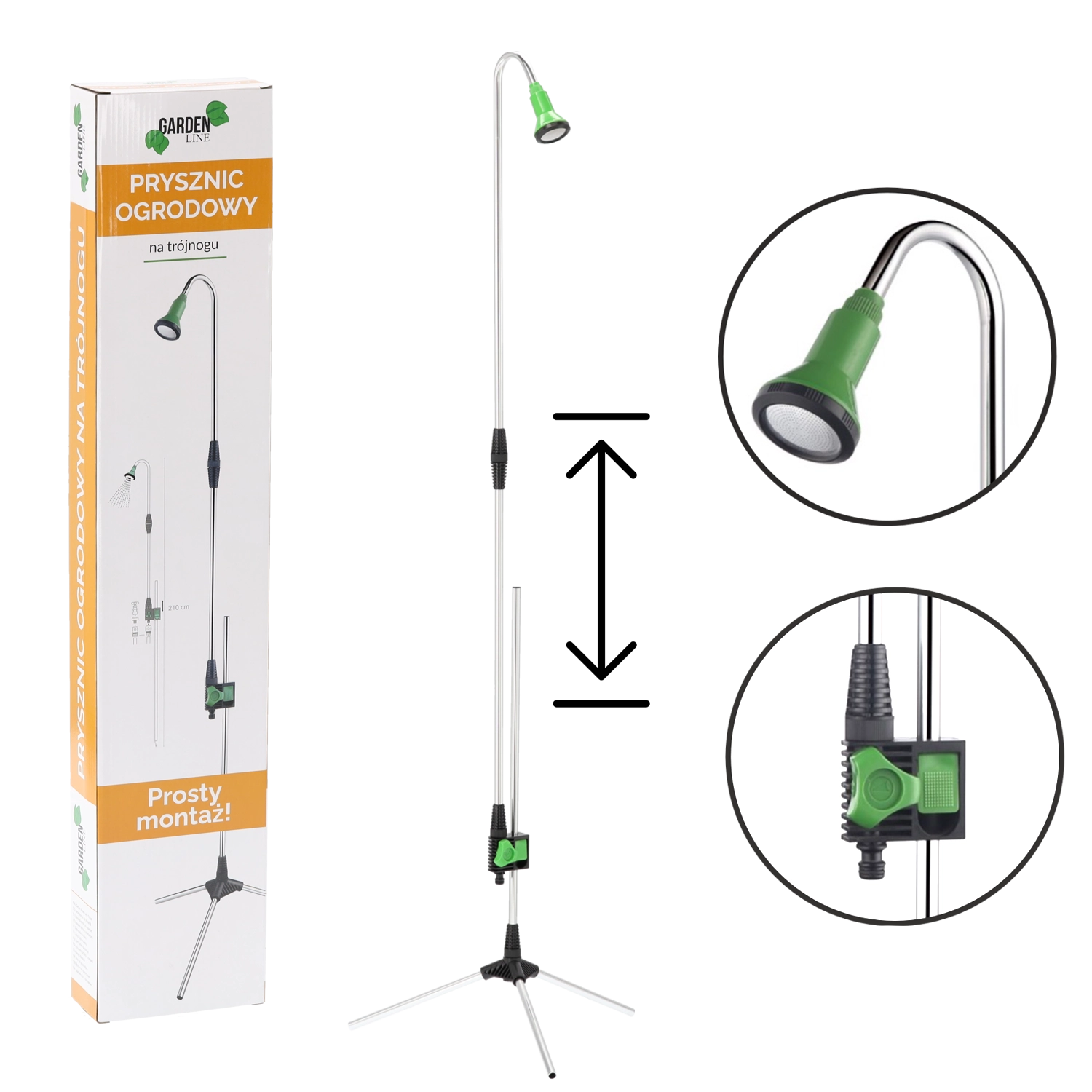 De tuindouche op driepoot is een praktische oplossing voor hete dagen of een snelle afspoelbeurt na het tuinieren. De stabiele driepoot zorgt voor een stevige plaatsing op uiteenlopende ondergronden en de traploze hoogteverstelling past de waterstraal aan voor kinderen en volwassenen. Aansluiten gaat in een oogwenk – met een standaard snelkoppeling op de tuinslang.