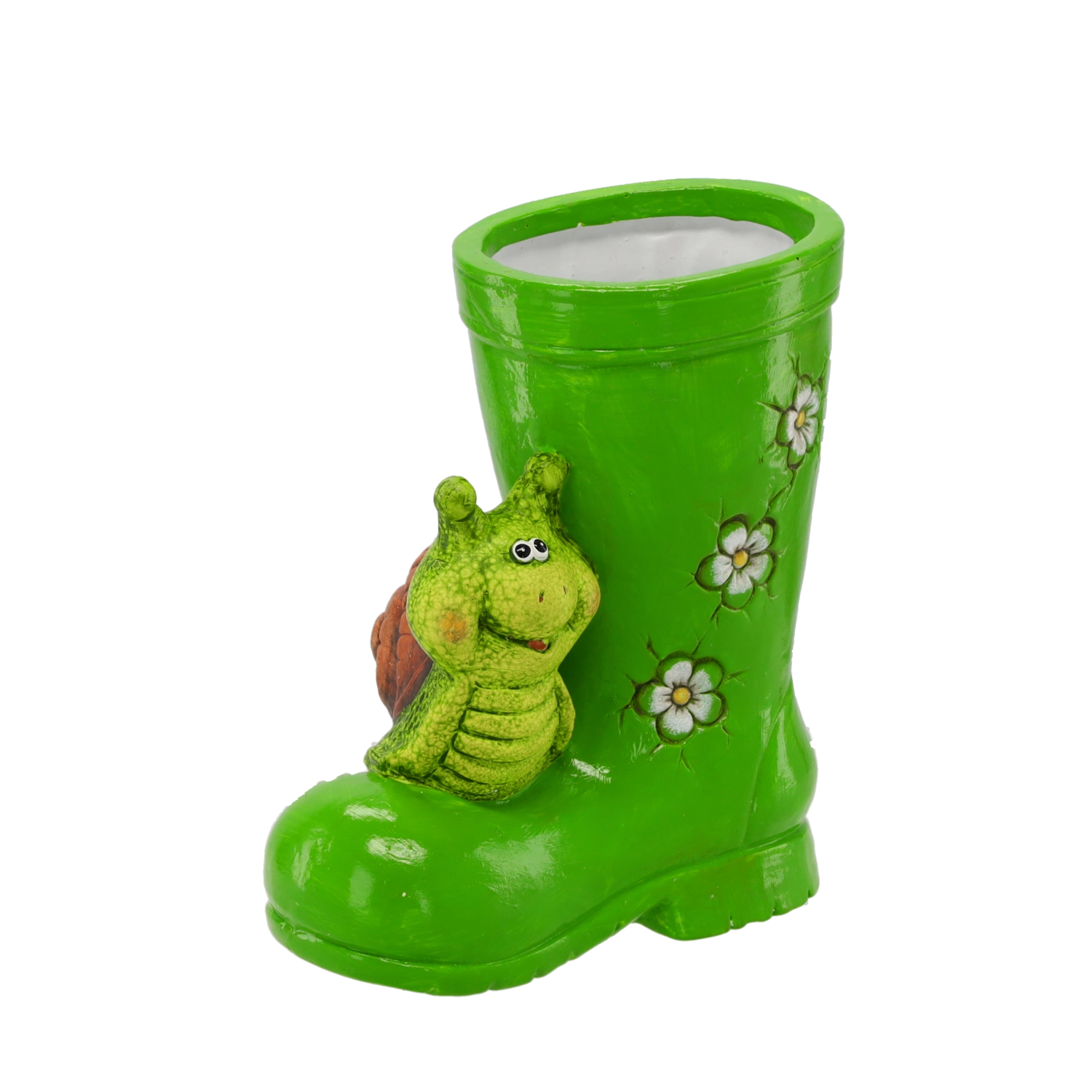Schattig tuinbeeld laars met slak dat elke bloemenborder, terras en balkon charme geeft. Gemaakt van duurzaam, weerbestendig materiaal, waardoor het kleur en vorm langdurig behoudt. Realistische details en de mogelijkheid om het als praktische bloempot te gebruiken maken het tot een opvallende en functionele aanvulling op je tuin.