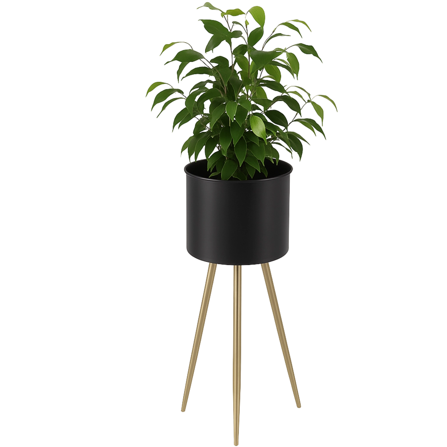 Stijlvolle plantenstandaard van 24 × 24 × 70 cm in elegant zwart met gouden pootjes geeft je planten een moderne en verfijnde uitstraling. Gemaakt van duurzaam metaal voor sterkte en stabiliteit, draagt tot 15 kg en dankzij de eenvoudige montage is hij snel gebruiksklaar. Past perfect in klassieke en minimalistische interieurs en is geschikt voor binnen- en (overdekt) buitengebruik.