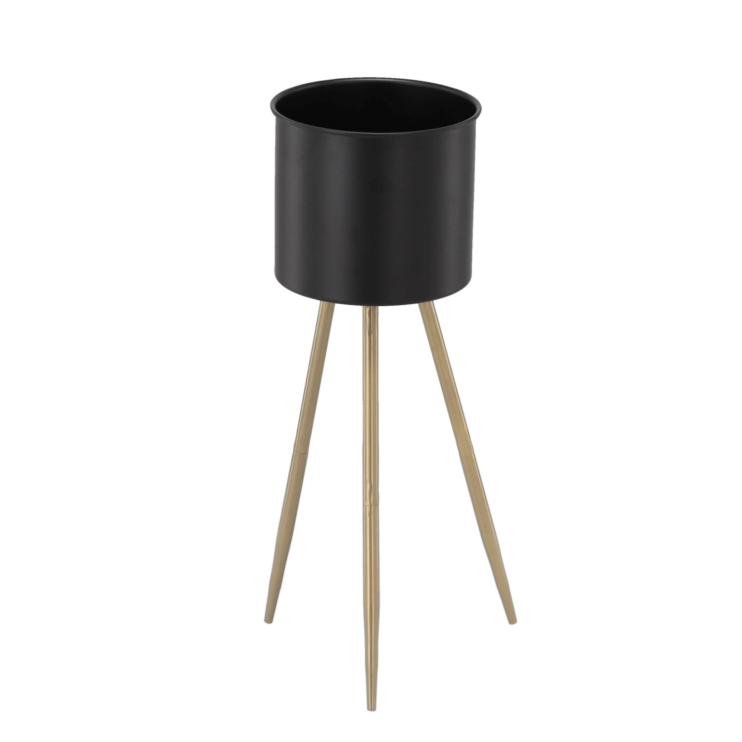 Stijlvolle metalen plantenstandaard van 21 × 21 × 60 cm in het zwart met gouden pootjes brengt in elk interieur een moderne en industriële elegantie. Dankzij de stabiele metalen constructie en het minimalistische design accentueert hij je planten en creëert hij een geavanceerde sfeer in huis, op kantoor en in de hotellobby.