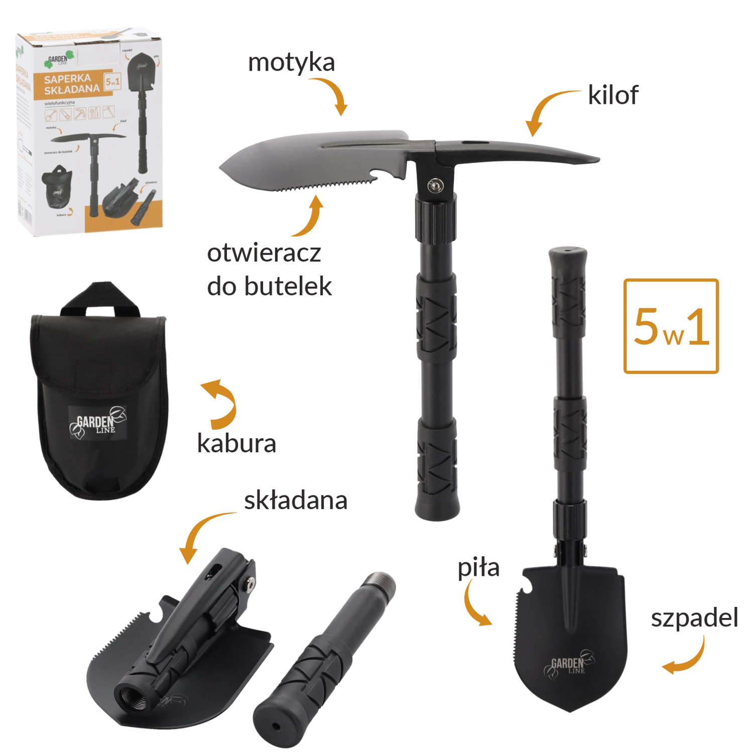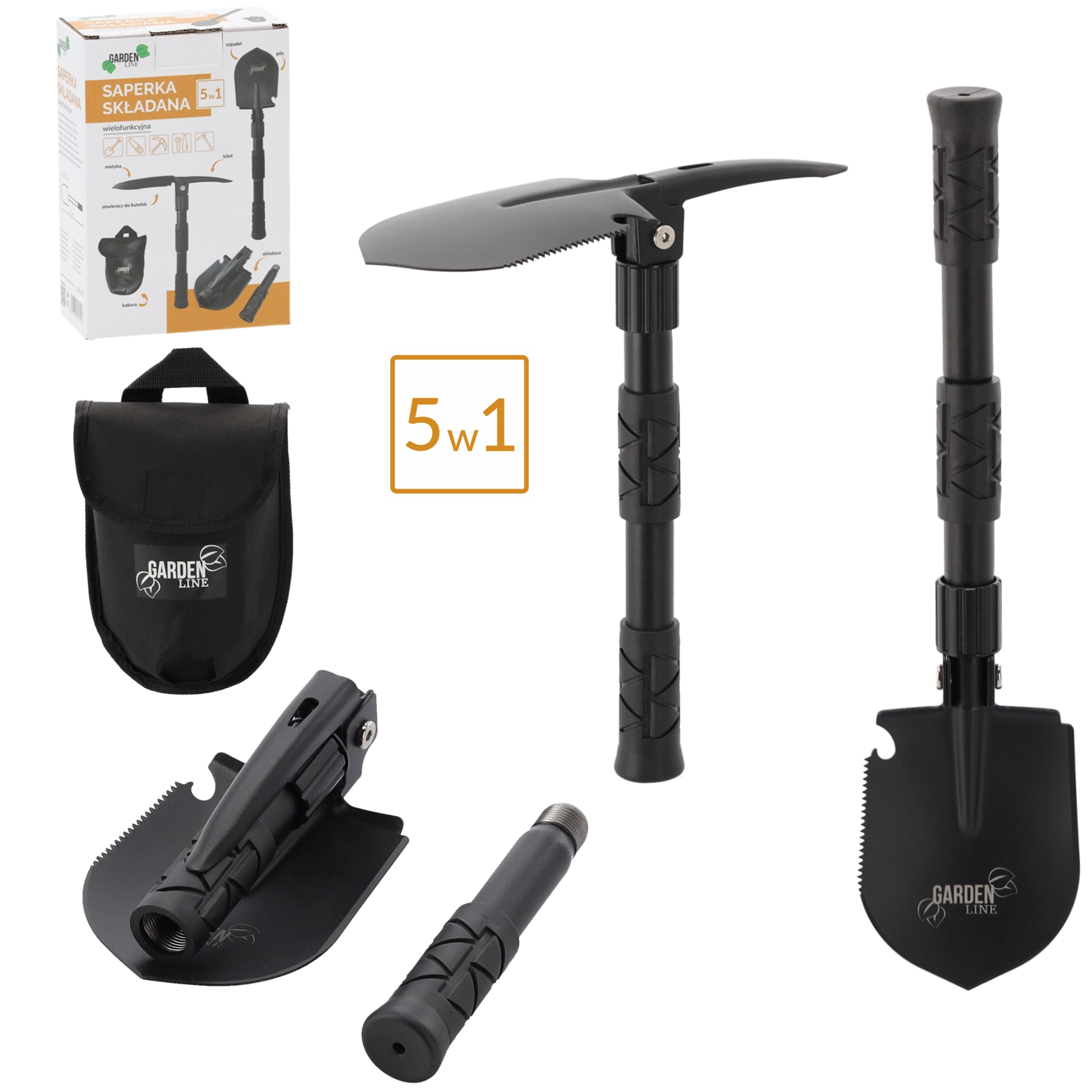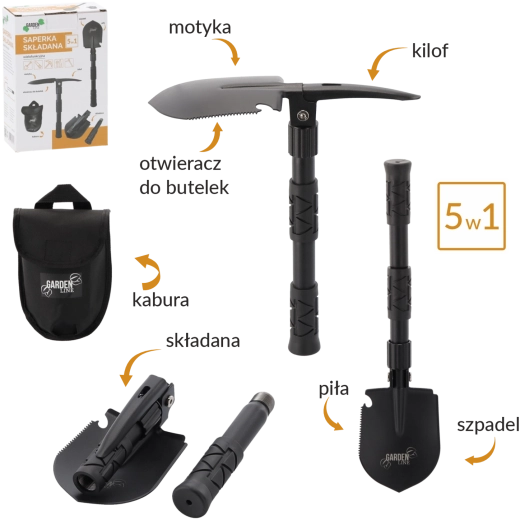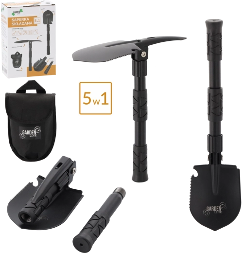 Ontdek het universele gereedschap voor elke tocht. Deze multifunctionele opvouwbare schop combineert tot vijf functies in één behuizing – van snel graven en terrein egaliseren tot het zagen van takken en werken in harde grond. Robuust mangaanstaal van het lemmet en een stalen handvat zorgen voor een lange levensduur, zelfs onder zware omstandigheden.