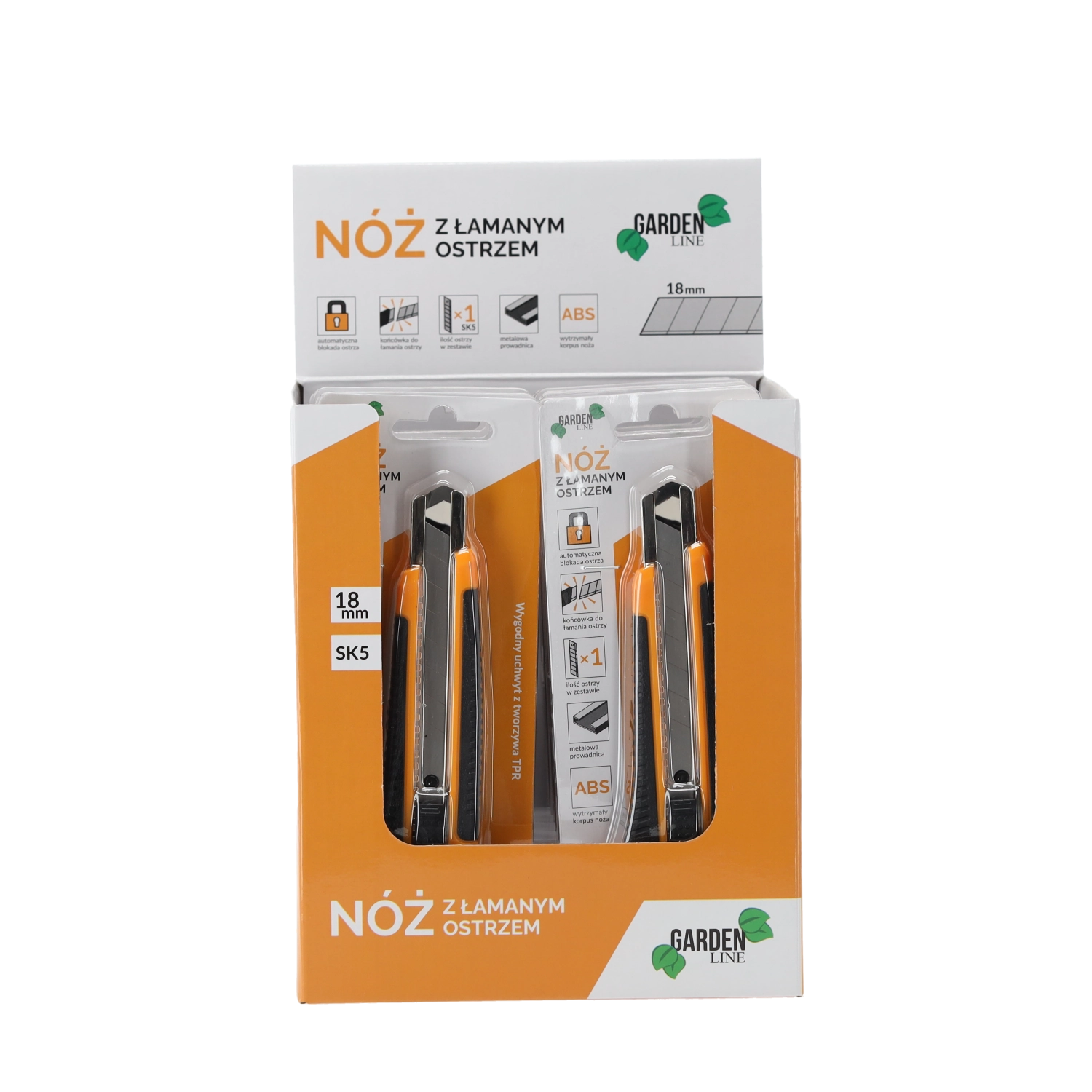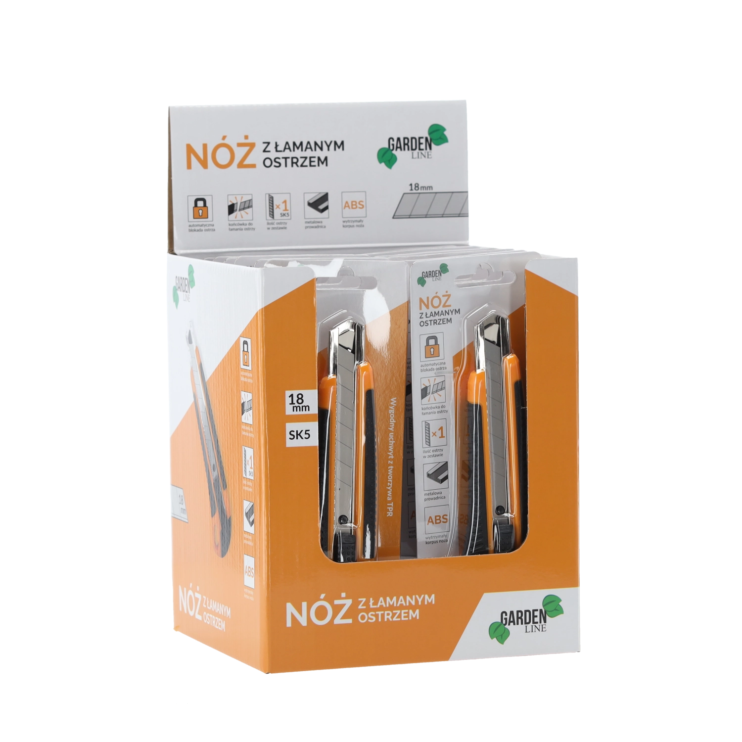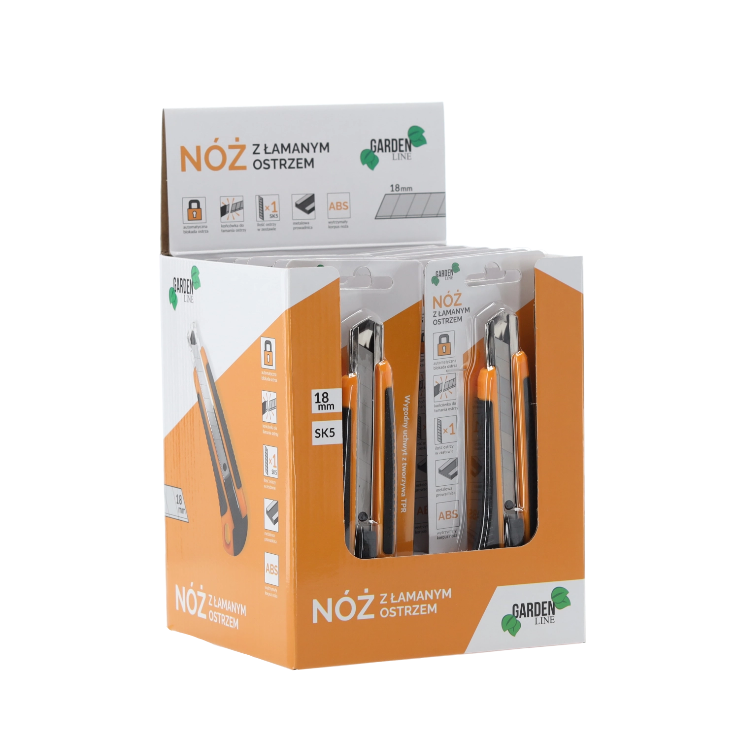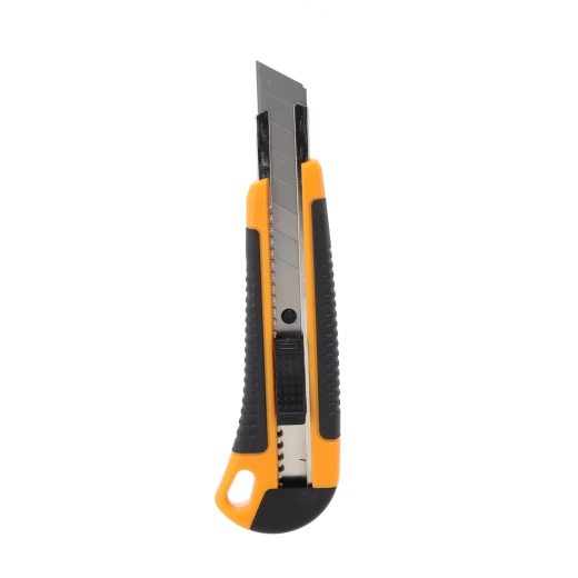 Betrouwbaar afbreekmes van 18 mm, ideaal voor het snijden van karton, folies, tapijt of kunststoffen. De robuuste ABS-behuizing in combinatie met de anti-slip TPR-greep zorgt voor zekerheid in de hand en comfort bij langdurig werken. Automatische vergrendeling fixeert het mes in de gewenste positie voor veilige en precieze sneden.