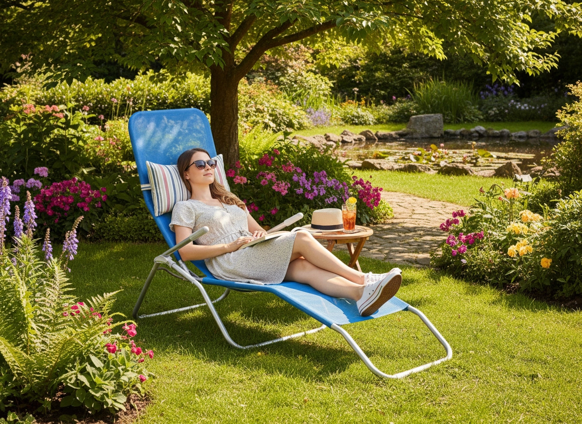 De praktische voetensteun verhoogt het comfort, zelfs tijdens langer loungen. Weerbestendige materialen zorgen voor eenvoudig onderhoud, zodat de ligstoel lang als nieuw blijft. De tijdloze blauwe kleur is gemakkelijk te combineren met ander buitenmeubilair.