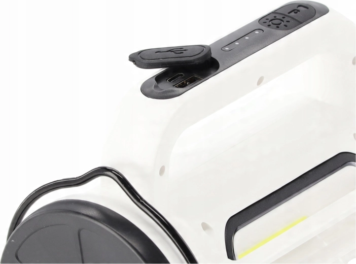 De geïntegreerde accu’s 2× 1200 mAh (Li‑ion 18650) zorgen voor een werktijd van 3–4,5 uur, afhankelijk van de modus. Opladen gaat gemakkelijk via USB‑C, dus je gebruikt dezelfde kabel als voor je telefoon of powerbank. Kwalitatieve OSRAM LED en COB‑diodes leveren tot 580 lm en een brede bundelhoek van 120° voor veilig bewegen en werken na zonsondergang.