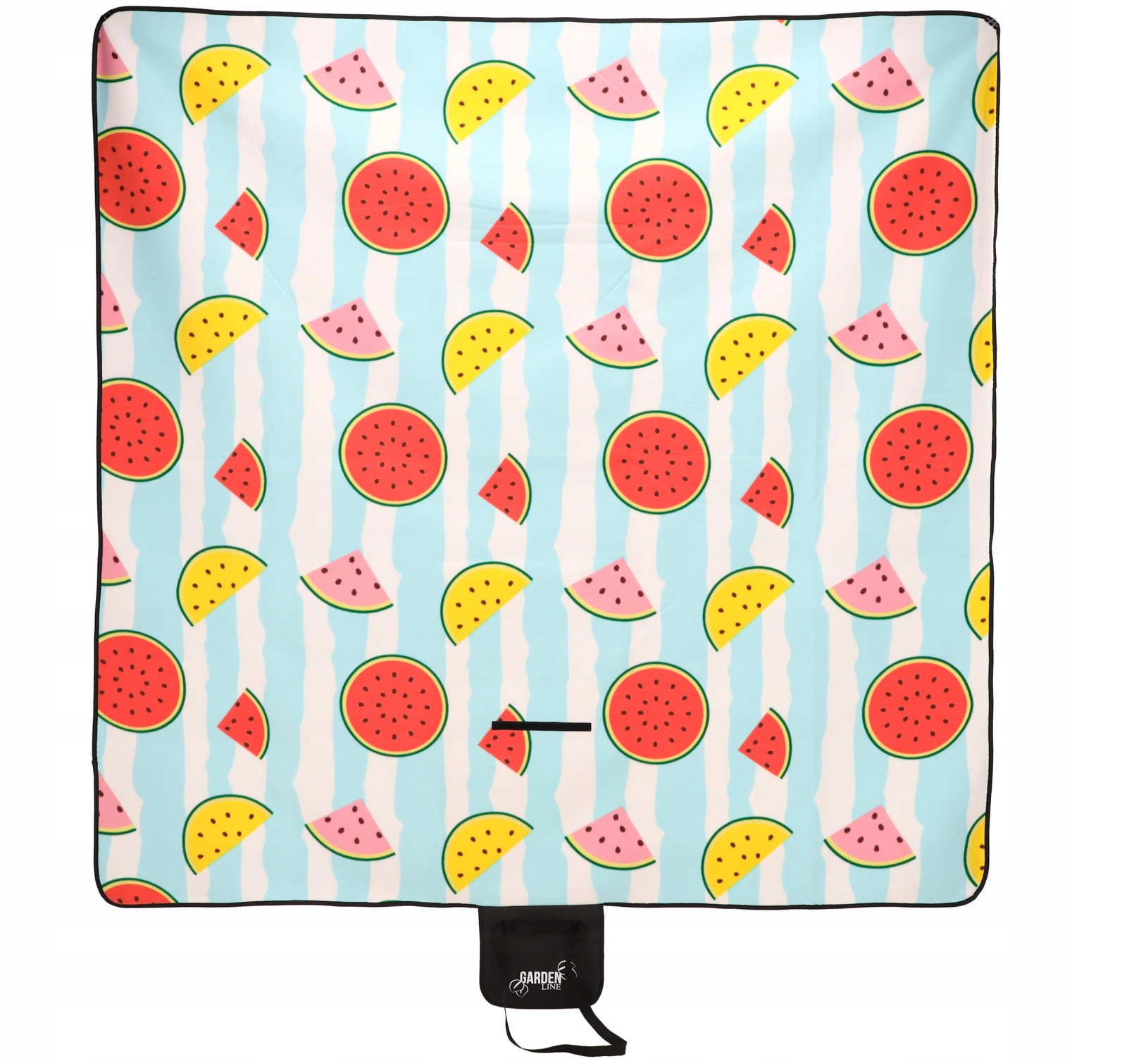 Je vouwt het kleed eenvoudig compact op en zet het vast met een klep met klittenband; het geïntegreerde handvat en de draagriem maken meenemen comfortabel. Het moderne fruitmotief met watermeloenen valt op bij elke picknick en is leuk voor zowel kinderen als volwassenen.