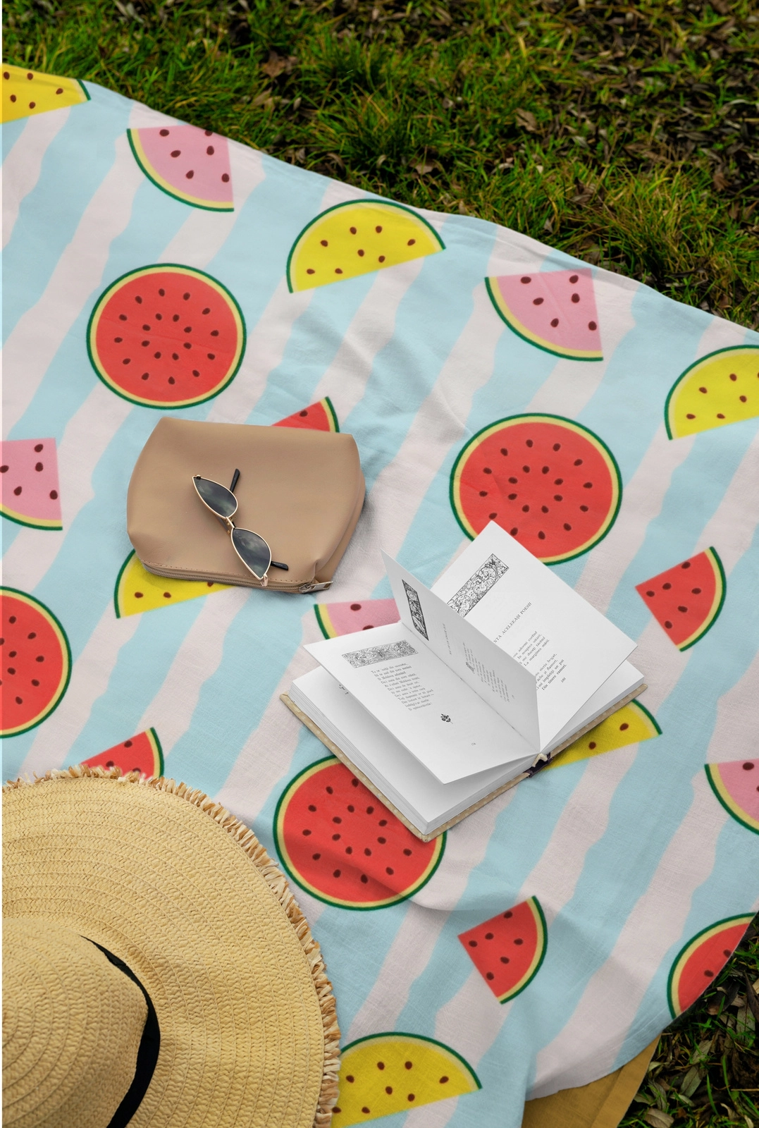 Het formaat van 200 × 200 cm biedt genoeg plek voor het hele gezin en het frisse watermeloenpatroon zorgt voor een zomerse sfeer bij elke picknick.
