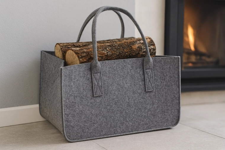Houd orde en stijl met deze veelzijdige vilten tas die praktisch gebruik combineert met een elegante uitstraling. Ideaal voor het dragen van hout voor de open haard, het vervoeren van boodschappen of het organiseren van spullen in huis en in de auto. Het minimalistische design past in ieder interieur.