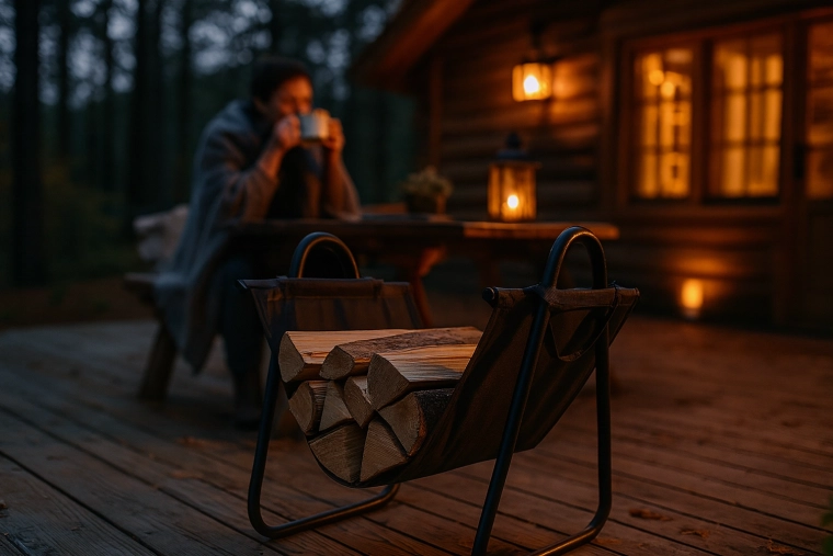 Geen rommel meer rond de haard. Dit metalen rek met een ruime tas maakt het eenvoudig om hout te dragen en veilig op te bergen. De stabiele constructie van het rek en het slijtvaste materiaal van de tas bieden een betrouwbare oplossing voor dagelijks stoken én een stijlvolle houtopslag.