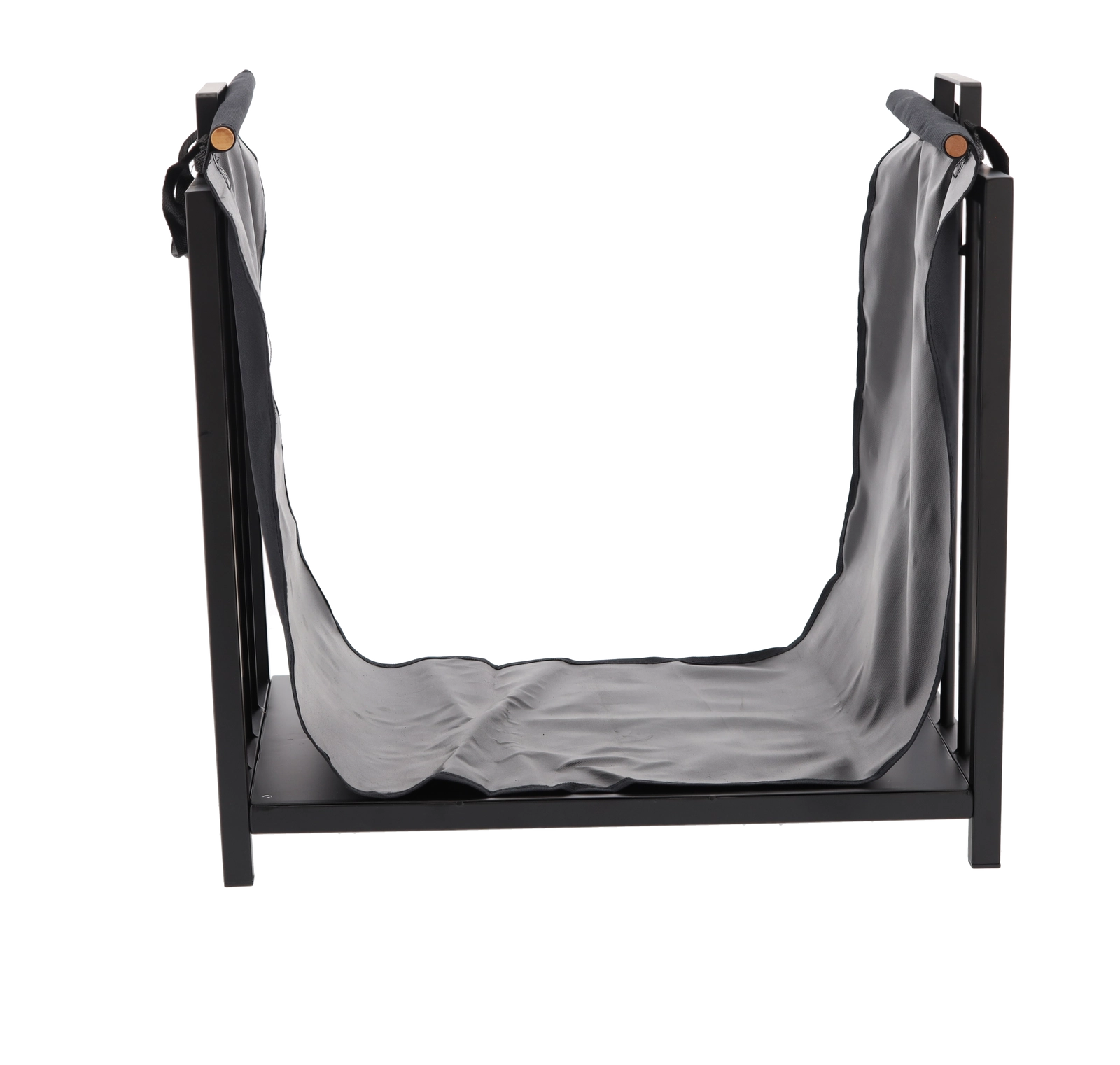 Het stevige zwarte frame zorgt voor stabiliteit bij het opslaan van hout en past uitstekend in zowel moderne als klassieke interieurs.