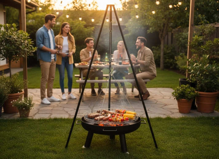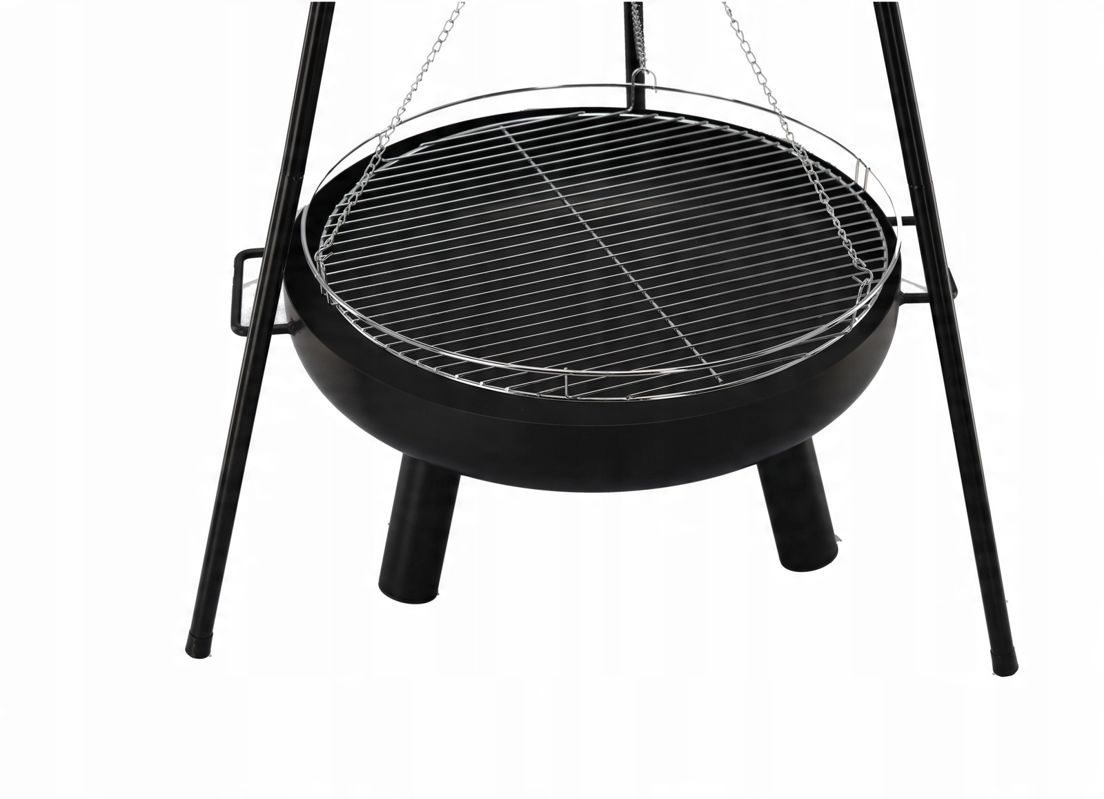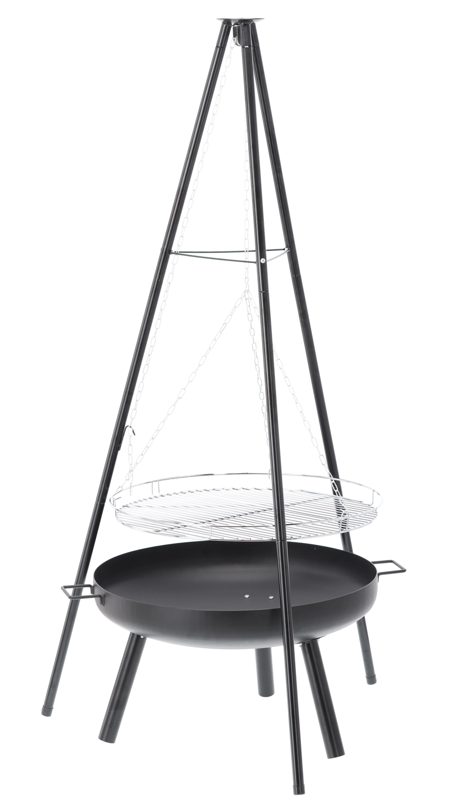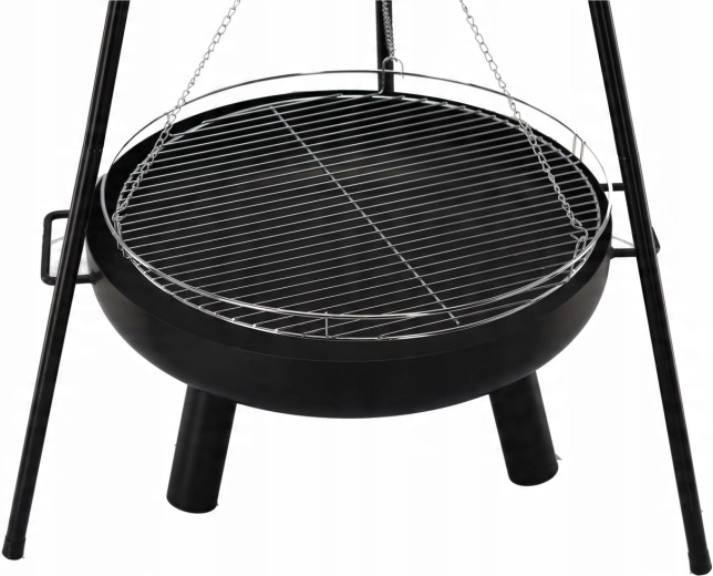 De stabiele driepoot zorgt voor veilig grillen in de tuin, op het terras en tijdens het kamperen. Het grote grilloppervlak is ideaal voor familie- en vriendensamenkomsten, terwijl de praktische handgrepen aan de schaal het hanteren en verplaatsen vergemakkelijken.