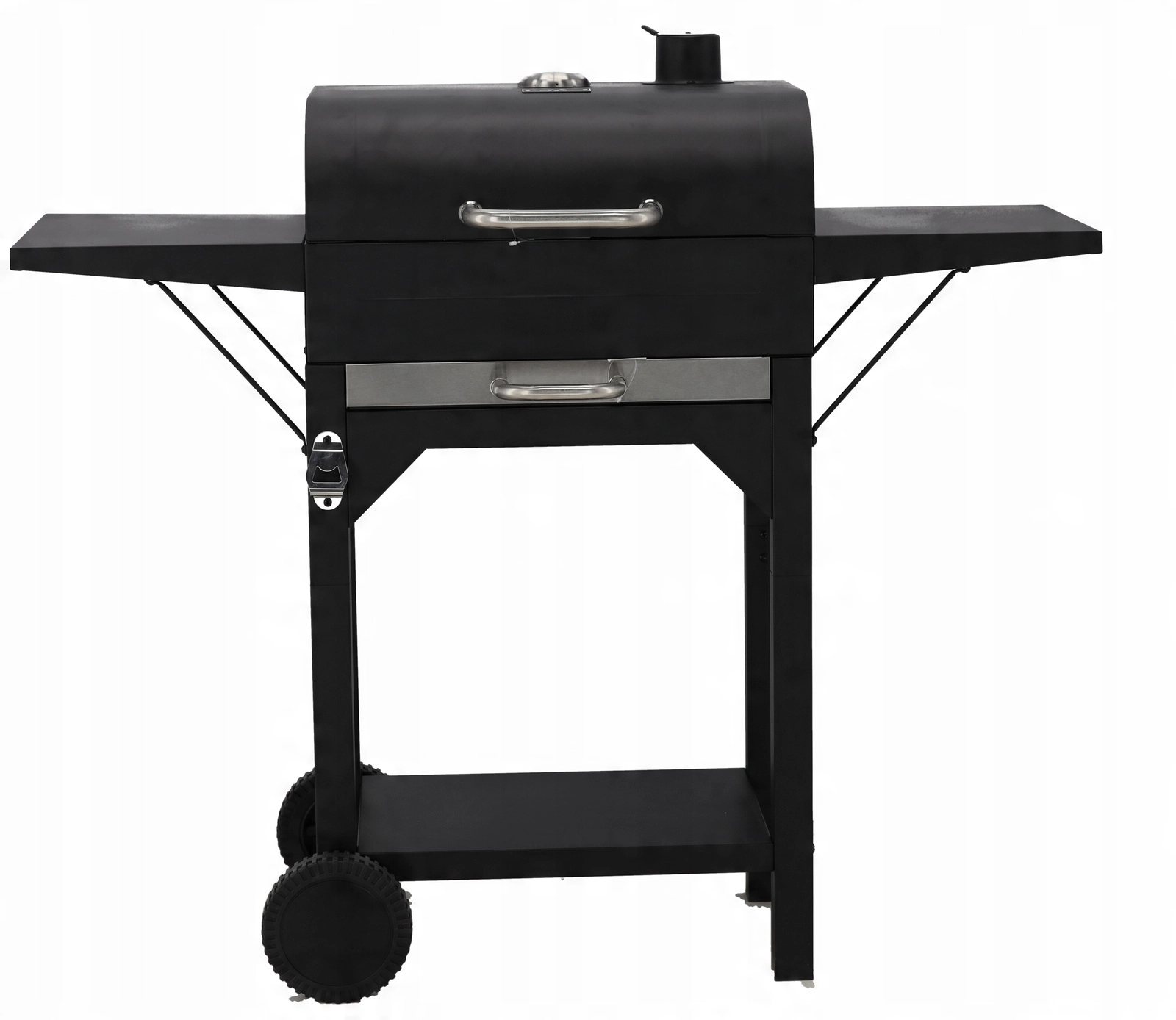 Doordachte details verhogen het comfort: een paar opklapbare tafels van 30 × 34 cm biedt werkruimte, de uitschuifbare aslade maakt reinigen eenvoudig en de transportwielen laten je de barbecue gemakkelijk verplaatsen. Verder aanwezig: drie roestvrijstalen handgrepen voor veilig bedienen, een verchroomd rek van 45 × 12 cm voor accessoires of opwarmen en een verzinkte houtskoolrooster voor een langere levensduur.