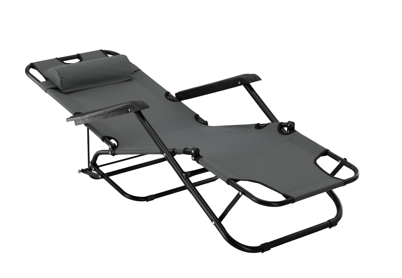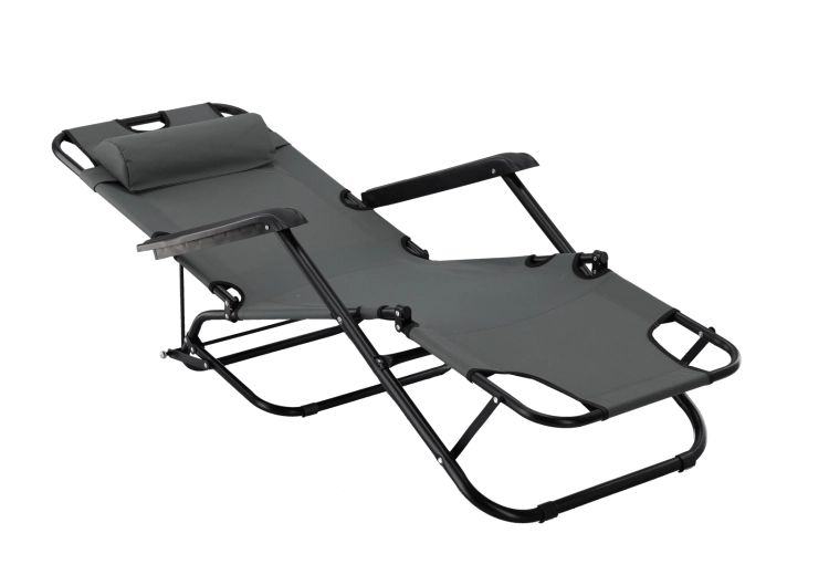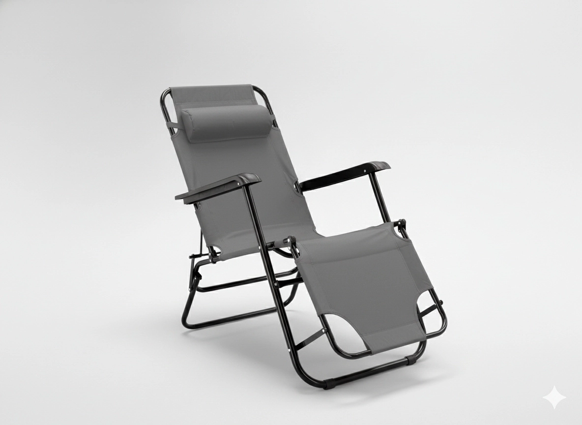 De praktische tuinligstoel in elegant grijs combineert stijl en functionaliteit voor dagelijks ontspannen. Het robuuste metalen frame met poedercoating zorgt voor stabiliteit, terwijl de ademende en elastische stof zich aan het lichaam aanpast en comfort biedt tijdens het zonnen of uitrusten in de schaduw.