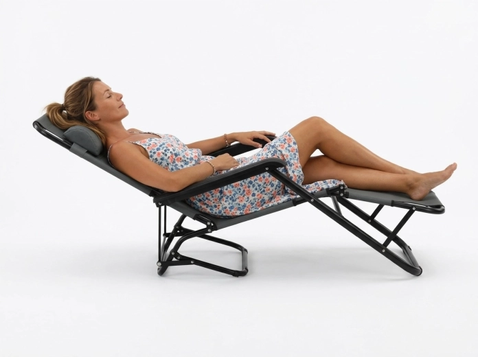 De ligstoel kan volledig vlak worden uitgeklapt en gebruikt voor een kort dutje of rust na het zwemmen of wandelen.