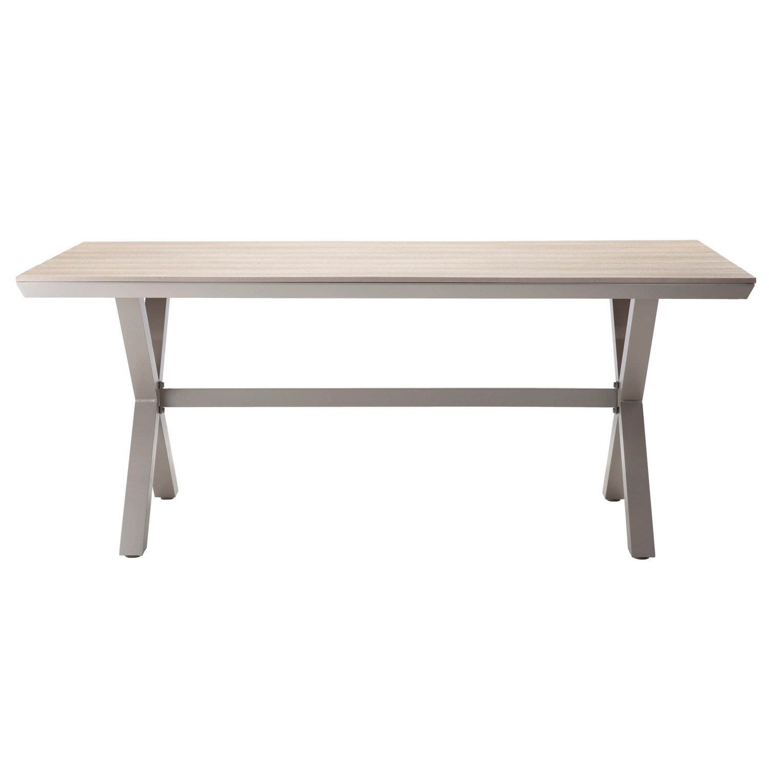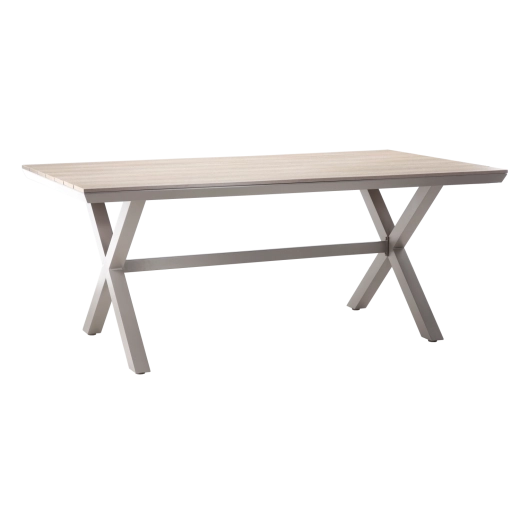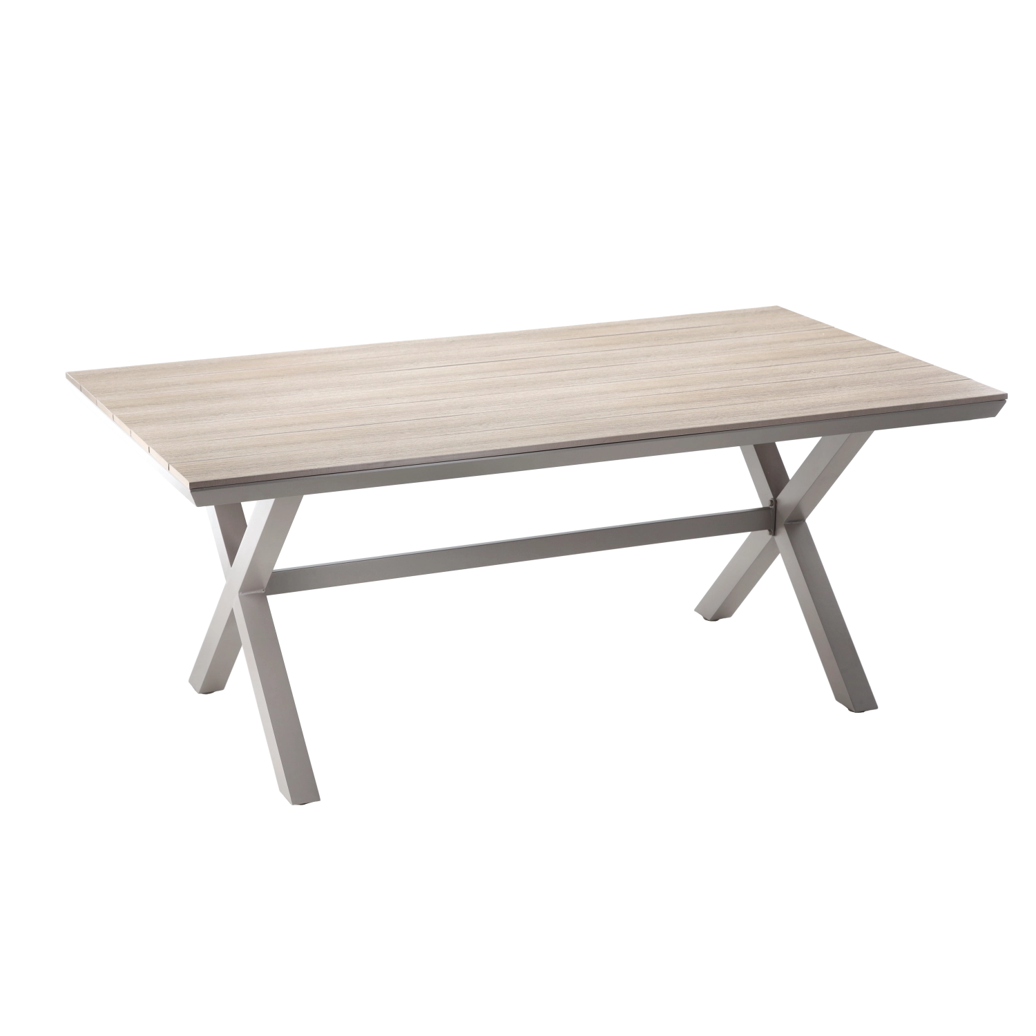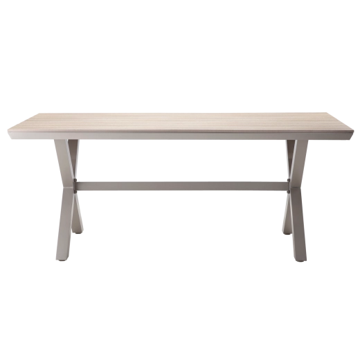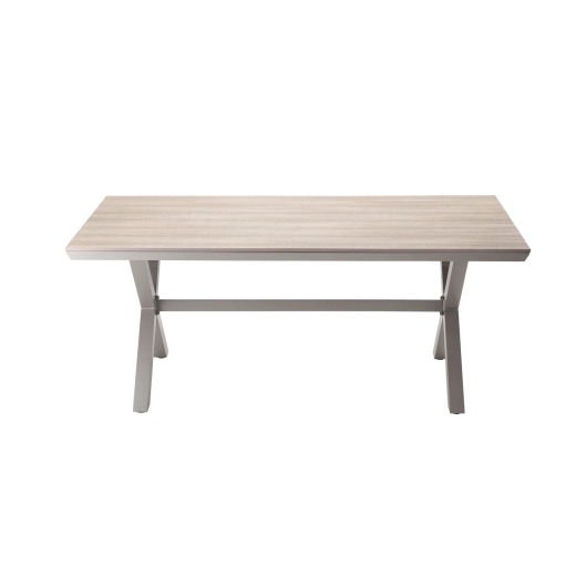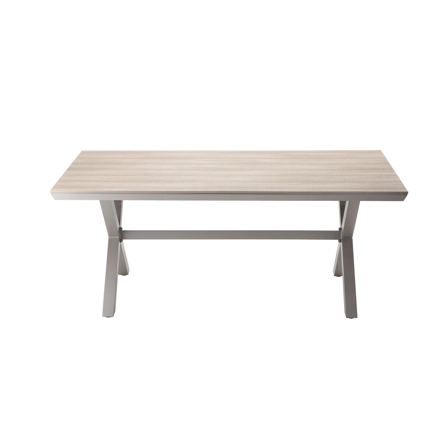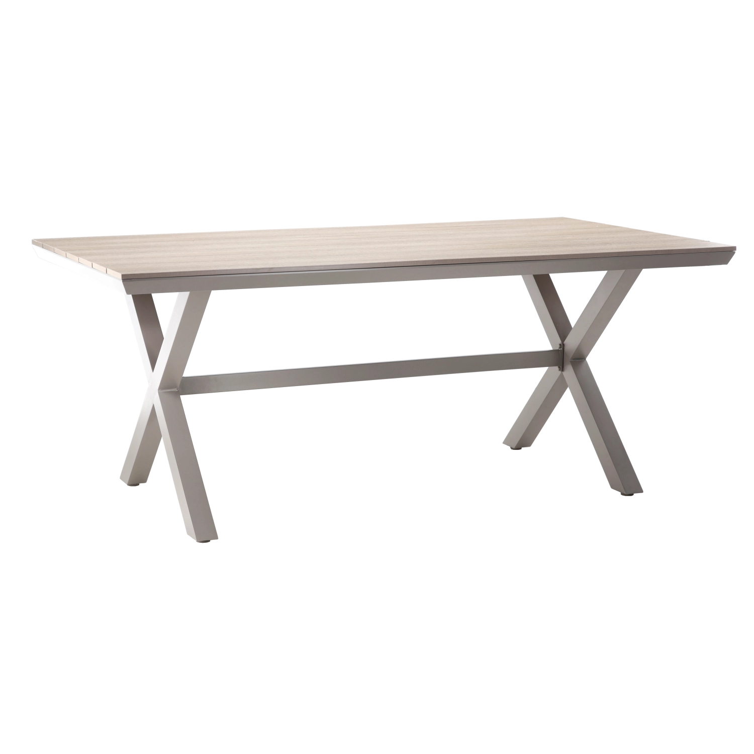 De beige aluminium tuintafel met polywood tafelblad is een uitstekende keuze voor terrassen, pergola’s en moderne tuinen. Hij biedt stabiele, gekruiste poten met versteviging, weerstand tegen corrosie en weersinvloeden, en de natuurlijke houtlook zonder te hoeven oliën.