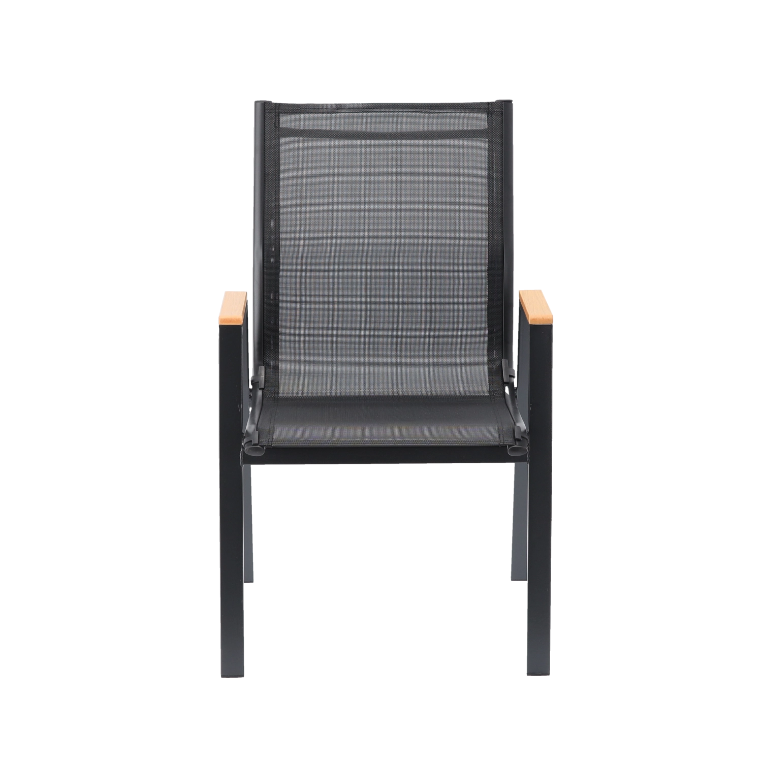 Op zoek naar een stevige en comfortabele tuinstoel die dagelijkse buitentoepassing moeiteloos aankan? Dit model combineert een stalen frame met poedercoating, Textilene 2×1 mesh met vulling voor extra comfort en armleuningen van polywood die ogen als hout maar nauwelijks onderhoud vragen.