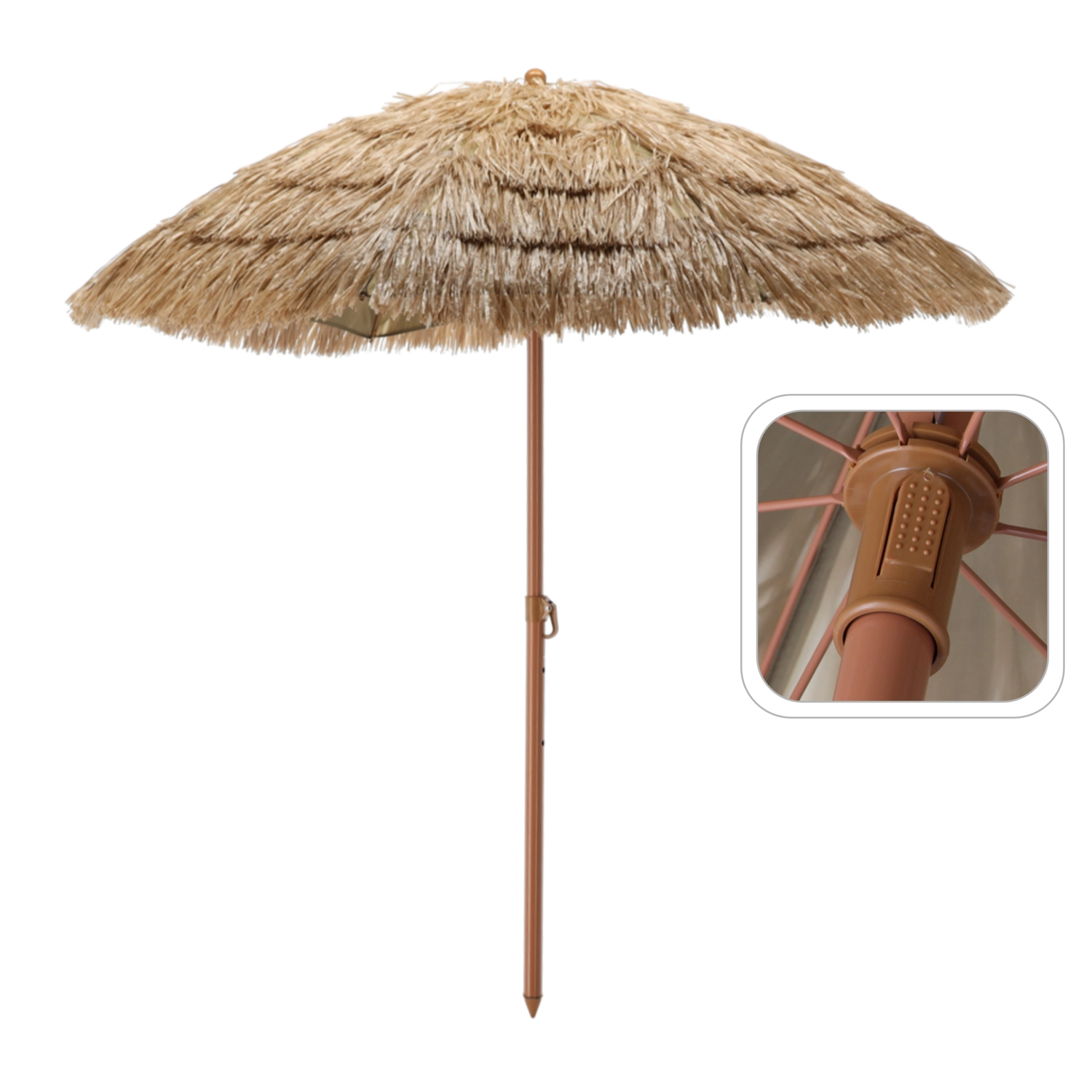 De stijlvolle “stro”-kap van PP-vezels geeft elke plek een tropische sfeer en maakt van jouw zitplek een echte blikvanger.