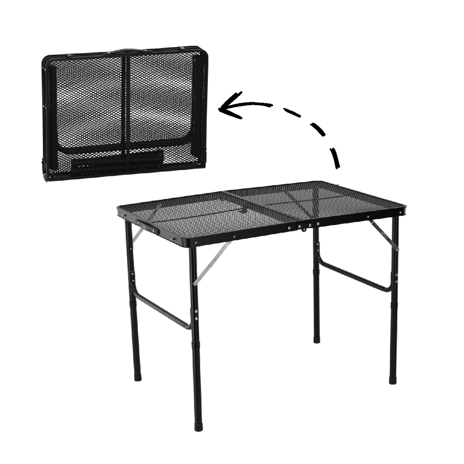 Geniet overal buiten van comfortabel en stabiel tafelen. Deze opvouwbare kampeertafel combineert duurzaam staal met een opvouwbare constructie voor eenvoudig transport en opslag. Dankzij de twee hoogtestanden van 40 en 70 cm past hij zich aan zitten, maaltijdvoorbereiding en buitenwerk aan.