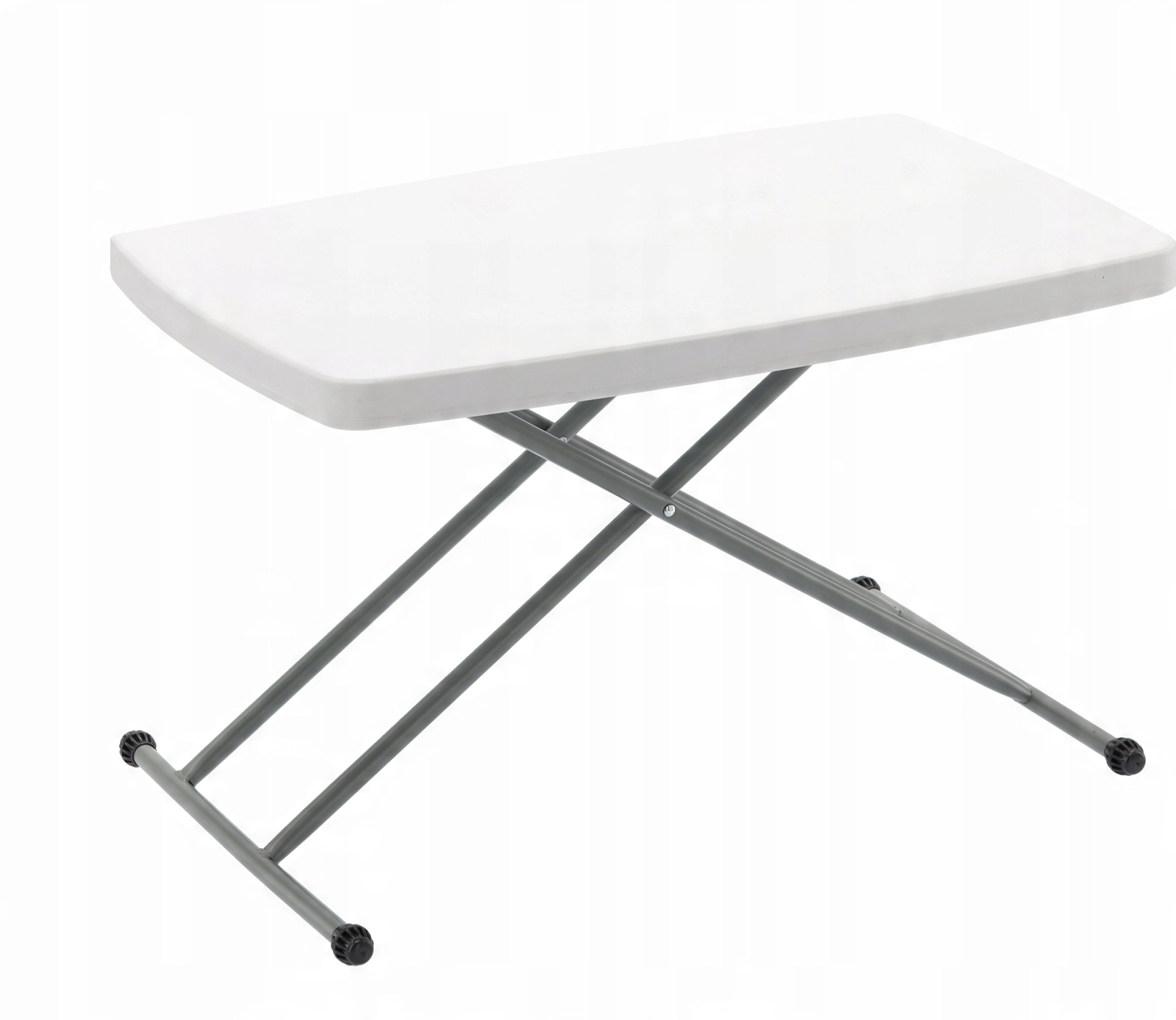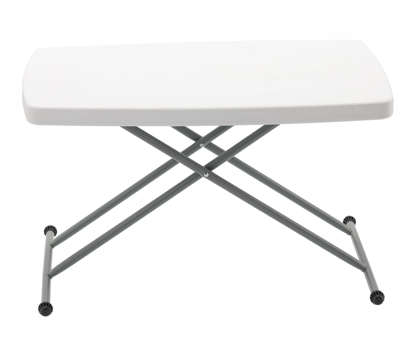 Zoek je een veelzijdige tafel die zich aan elke situatie aanpast? Deze opvouwbare toeristische en cateringtafel met afmetingen 76,5 × 49,5 cm en een traploos hoogtebereik van 36–71,5 cm is geschikt als salontafel, serveer- of tuintafel. Stalen kruispoten met doppen zorgen voor stabiliteit op verschillende ondergronden, terwijl de lichte constructie veelvuldig verplaatsen vergemakkelijkt.