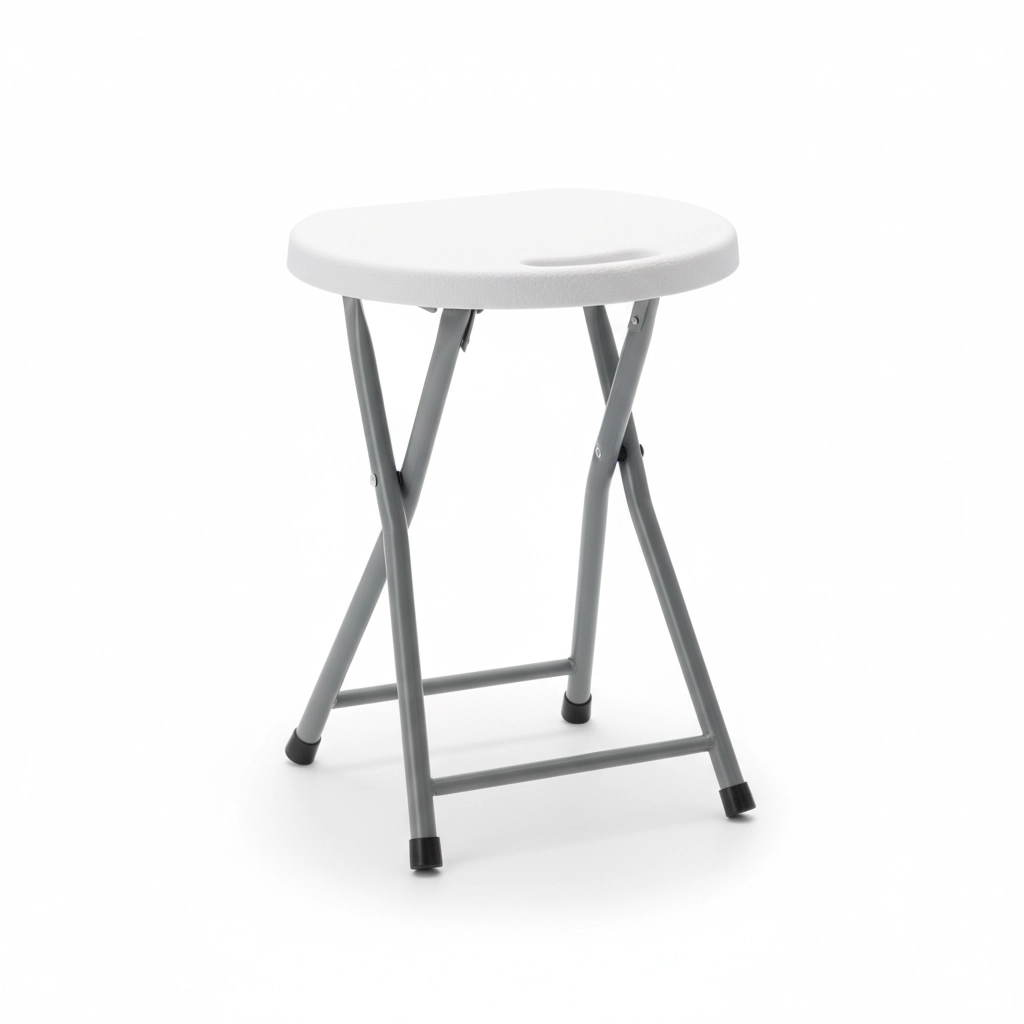Deze compacte opvouwbare kruk is ideaal voor kamperen, vissen, picknicks, festivals en thuisgebruik. De kunststof zitting met geïntegreerde greep en kruisversterkte metalen poten met antislipdoppen bieden zekerheid en stabiliteit op diverse ondergronden. Opgevouwen is hij volledig plat, zodat je hem gemakkelijk in de auto, kast of onder de tafel opbergt.