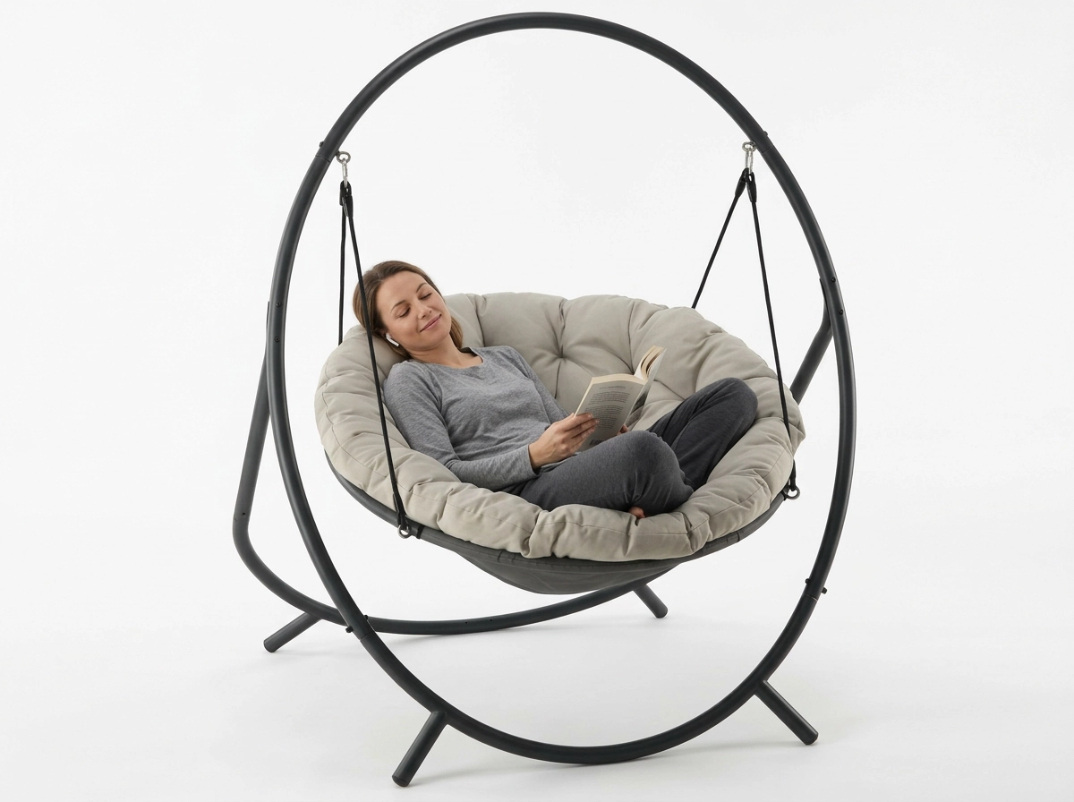 De duurzame stalen constructie met hangriemen zorgt voor sterkte, stabiliteit en een lange levensduur, zelfs bij regelmatig gebruik buiten.