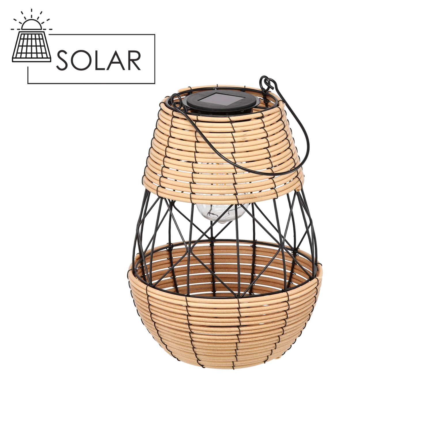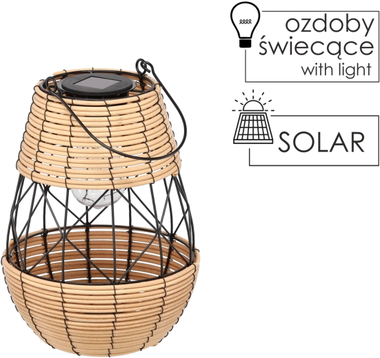 Creëer een betoverende sfeer in de tuin, op het balkon of het terras. Deze 32 cm hoge zonnelantaarn met rotanlook en metalen frame laadt overdag op via de zon en gaat na zonsondergang automatisch aan met warm, aangenaam licht. Door de combinatie van zwart en beige past hij perfect in zowel moderne als natuurlijke settings.