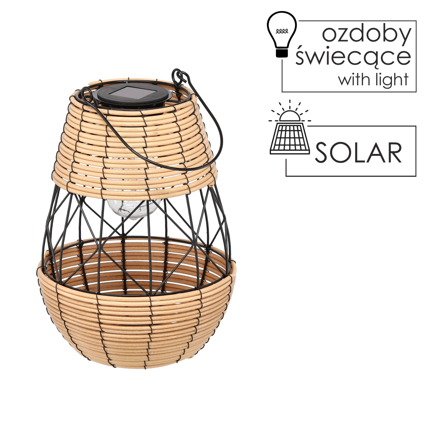 Stijlvolle zonne-LED lantaarn van metaal in zwart‑beige uitvoering die je buitenruimte voorziet van warm, sfeervol licht. Werkt volledig zonder kabels dankzij zonne-energie, heeft een stevige metalen constructie en een praktisch ophanghandvat om op te hangen of neer te zetten op tafel of terras.