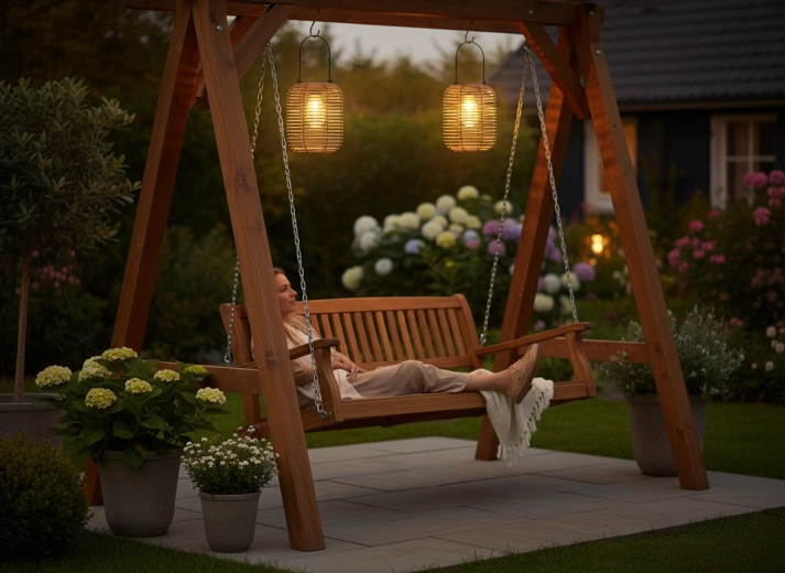Het geïntegreerde zonnepaneel laadt overdag de accu op en bij schemering gaat de lantaarn vanzelf aan. Een zuinige en comfortabele oplossing zonder kabels.