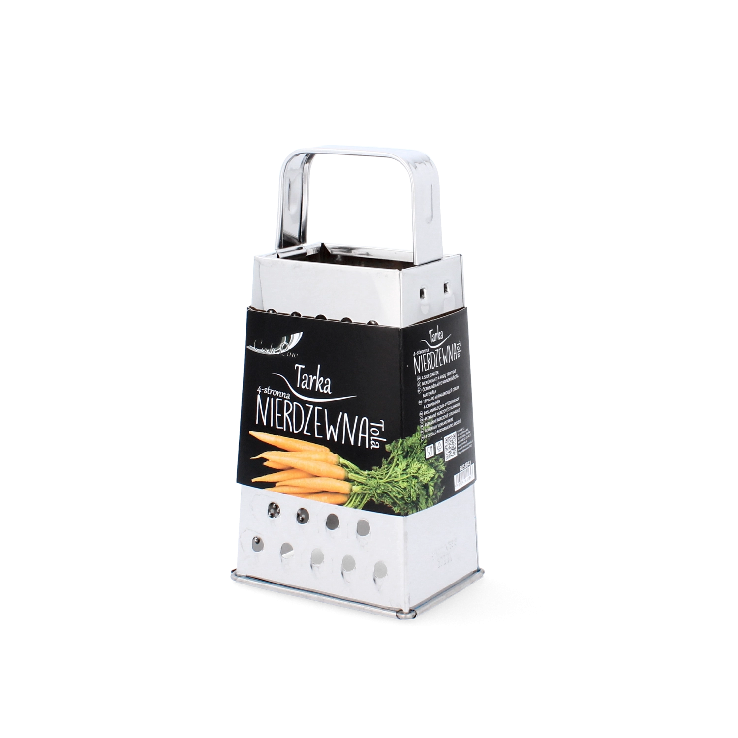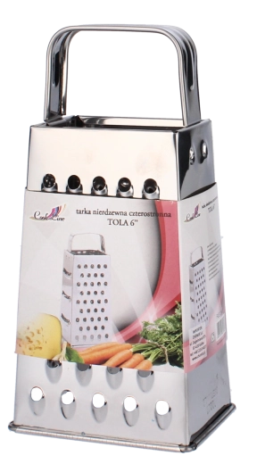 Praktische en duurzame roestvrijstalen Tola vierzijdige rasp met een hoogte van 17,5 cm, ideaal voor dagelijks gebruik. Biedt 4 soorten raspen voor groenten, kaas en fruit, heeft een ergonomisch ontwerp voor comfortabel vasthouden en een antislipbodem voor veilig en stabiel werken. Roestvrij staal garandeert een lange levensduur en weerstand tegen corrosie.