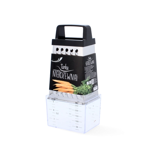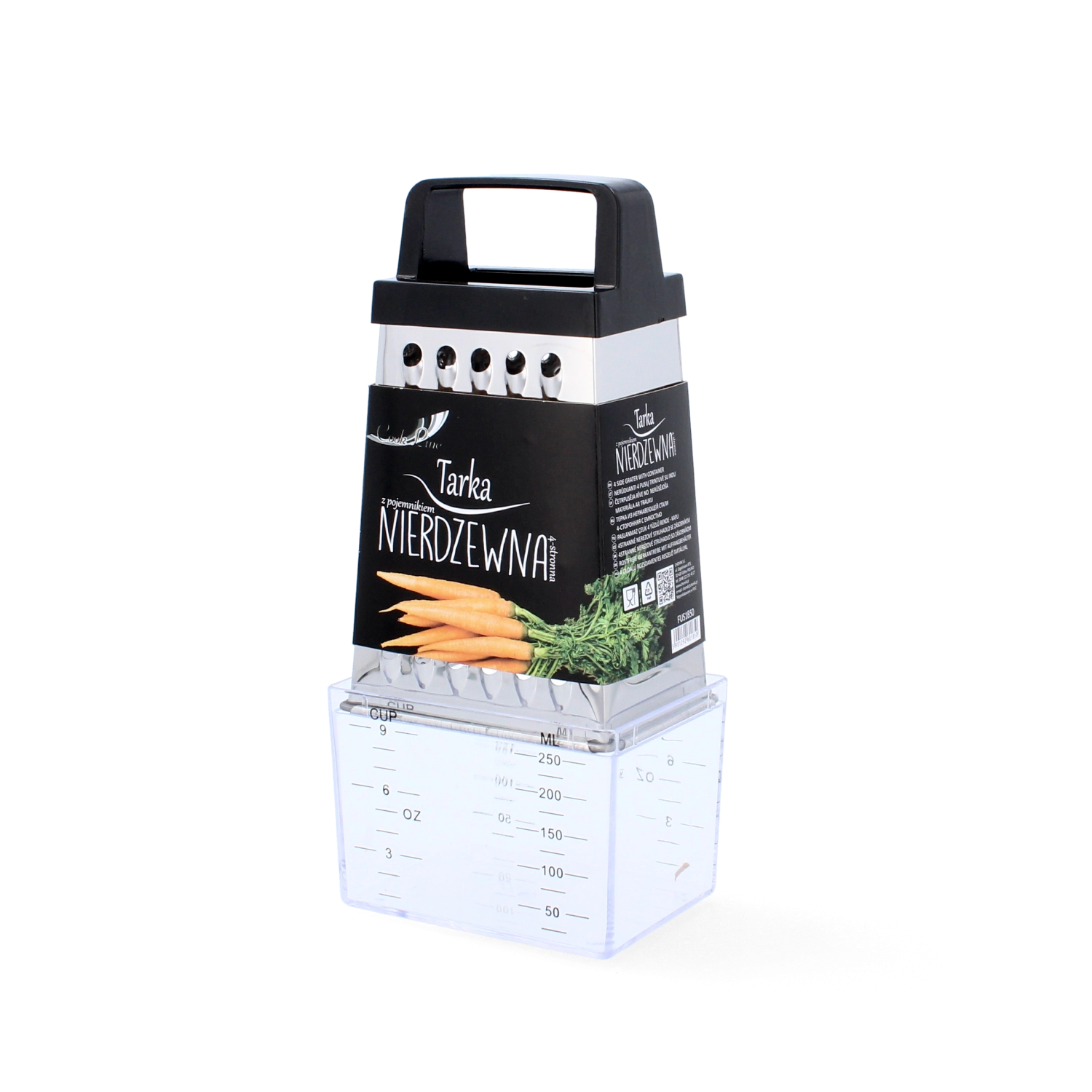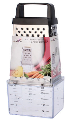 Praktische roestvrijstalen keukenschaaf met een aangesloten opvangbak voor schoon en comfortabel werken. Biedt 4 raspzijden – fijn, grof, plakken en extra fijn. Dankzij de ergonomische handgreep ligt hij uitstekend in de hand en de duurzame roestvrijstalen constructie zorgt voor een lange levensduur.