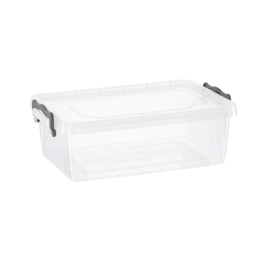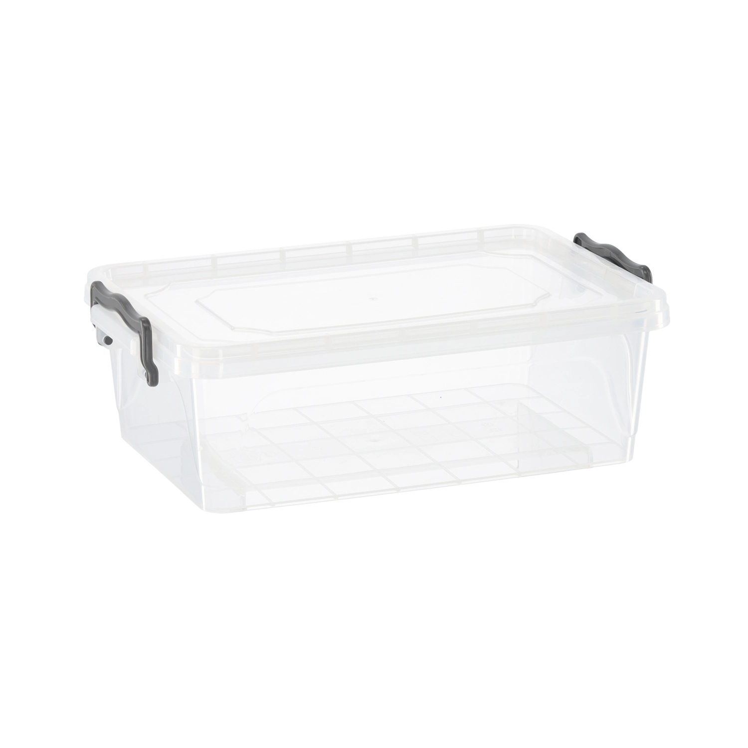 Praktische voedselcontainer met een inhoud van 6 liter voor overzichtelijke en hygiënische opslag in koelkast en voorraadkast. Transparante wanden maken controle van de inhoud mogelijk zonder te openen, het afsluitende clipdeksel beschermt tegen vocht en vuil, en BPA-vrij plastic zorgt voor veilig contact met voedsel. De container is geschikt voor magnetron, vaatwasser en vriezer en bespaart ruimte dankzij de rechthoekige vorm.