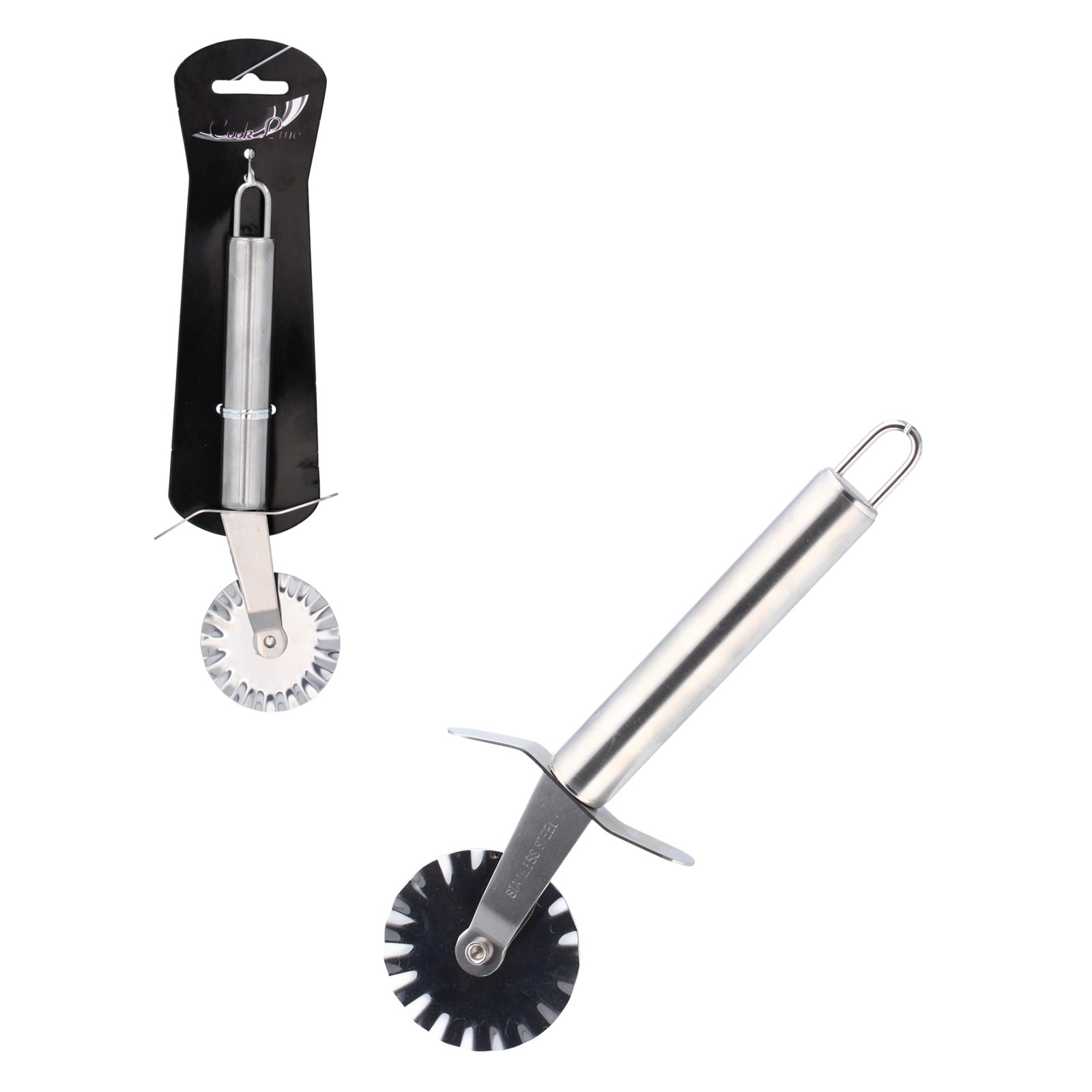 Praktische deegsnijder van roestvrij staal voor eenvoudig en nauwkeurig snijden van deeg, pizza en pasta. Het gekartelde wieltje maakt decoratieve randen met een professionele uitstraling. De ergonomische handgreep zorgt voor een comfortabele grip en dankzij het ophangoog is hij gemakkelijk op te bergen.