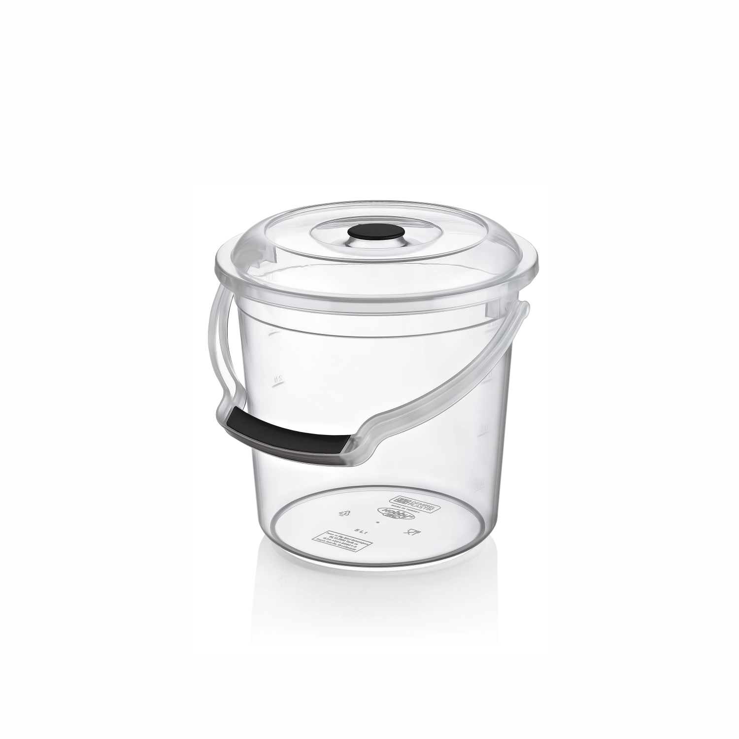 De transparante kunststof emmer met deksel en een inhoud van 5 l is een veelzijdige oplossing voor het opbergen van voedsel, vloeistoffen, klein gereedschap of tuinmateriaal. Dankzij de doorzichtige wanden controleert u snel de inhoud en hoeveelheid, terwijl het stevige deksel beschermt tegen stof en vuil en veilig stapelen mogelijk maakt.