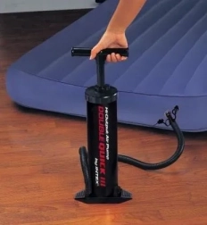 De Intex Double Quick III handpomp is een duurzame en stabiele dubbelwerkende pomp die matrassen, boten en andere opblaasartikelen snel oppompt. Dankzij de tweewegwerking – bij indrukken én omhoogtrekken biedt hij een hogere luchtstroom en versnelt hij het oppompen zonder moeite. De stabiele voetsteun en de universele 3 opzetstukken maken gebruik thuis en onderweg eenvoudig.