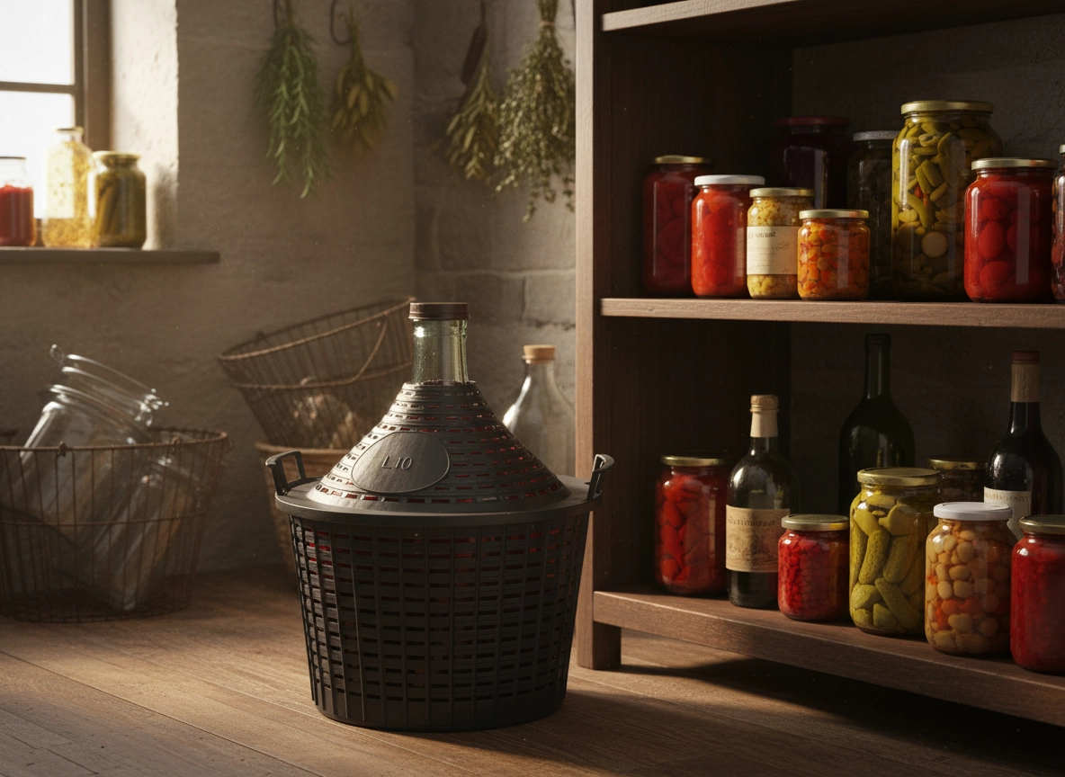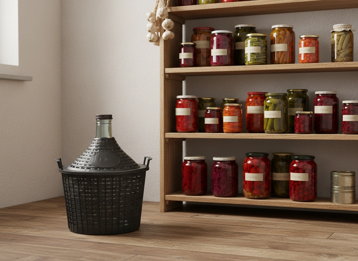 Ontdek een betrouwbare hulp voor thuis fermenteren – een glazen mandfles met een inhoud van 10 l in een praktische mand. Glas is neutraal voor smaken en geuren, waardoor je wijn, bier of kruidenlikeuren hun zuivere profiel behouden. De kunststof mand beschermt de fles tegen stoten, vergemakkelijkt de handling en verhoogt de veiligheid tijdens het dragen.