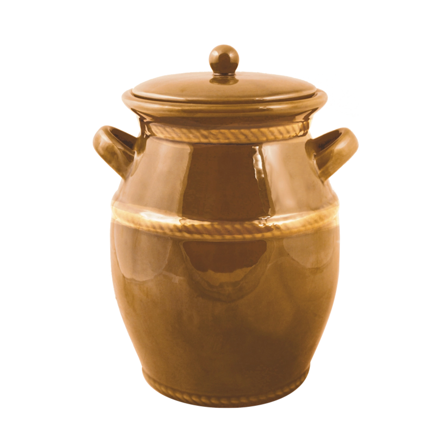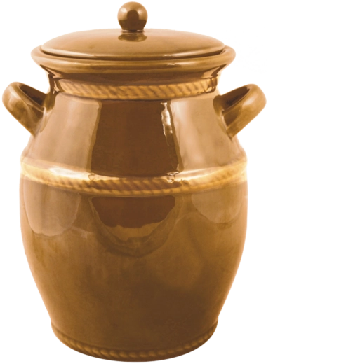 Deze kwalitatieve keramische fermentatiepot met een inhoud van 4 liter is een betrouwbare hulp voor het bereiden van huisgemaakte zuurkool, augurken en andere gefermenteerde voeding zonder conserveermiddelen. Het honingglazuur beschermt het oppervlak, vergemakkelijkt het onderhoud en benadrukt de traditionele uitstraling die in elke keuken past.