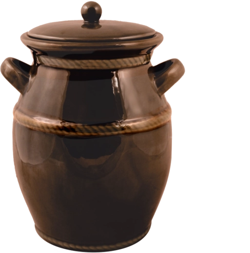 Traditionele keramische pot met een inhoud van 4 liter voor het thuis fermenteren van augurken, zuurkool en andere groenten. Dankzij het geglazuurde steengoed is hij zuurbestendig, neemt geen geuren op en houdt een stabiele temperatuur voor een vlekkeloze fermentatie. Geschikt voor oven en magnetron en vaatwasmachinebestendig, dus eenvoudig te onderhouden en met een lange levensduur.