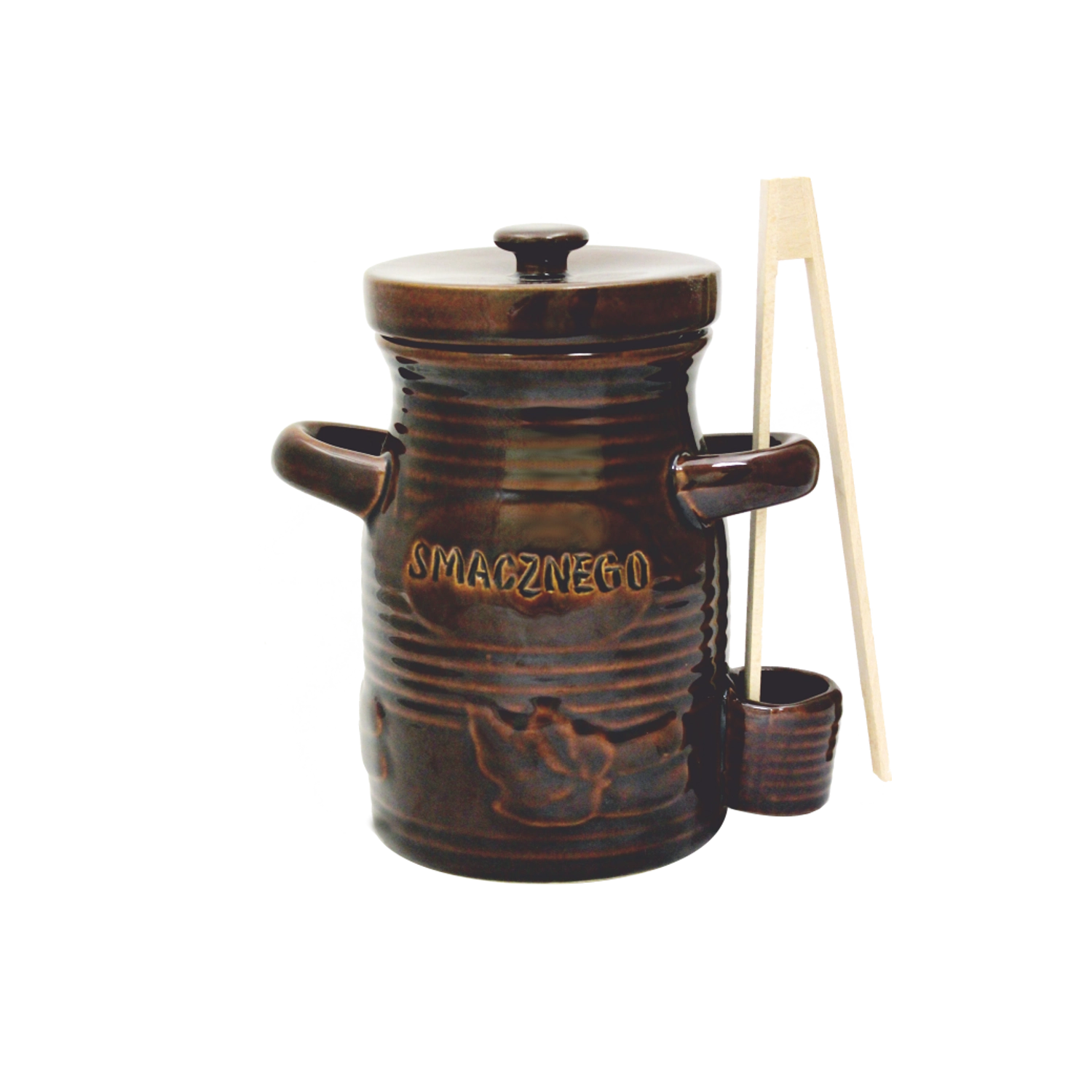 Praktische keramische pot met een inhoud van 3,5 l voor thuis fermenteren en bewaren. Dankzij de hoogwaardige keramiek en het niet-toxische, zuurbestendige oppervlak creëert hij optimale omstandigheden voor fermentatie en behoudt hij de natuurlijke smaak en kwaliteit van voedingsmiddelen. Inclusief een handige zijvak voor de tang en een houten tang van 22 cm voor hygiënisch uitnemen.